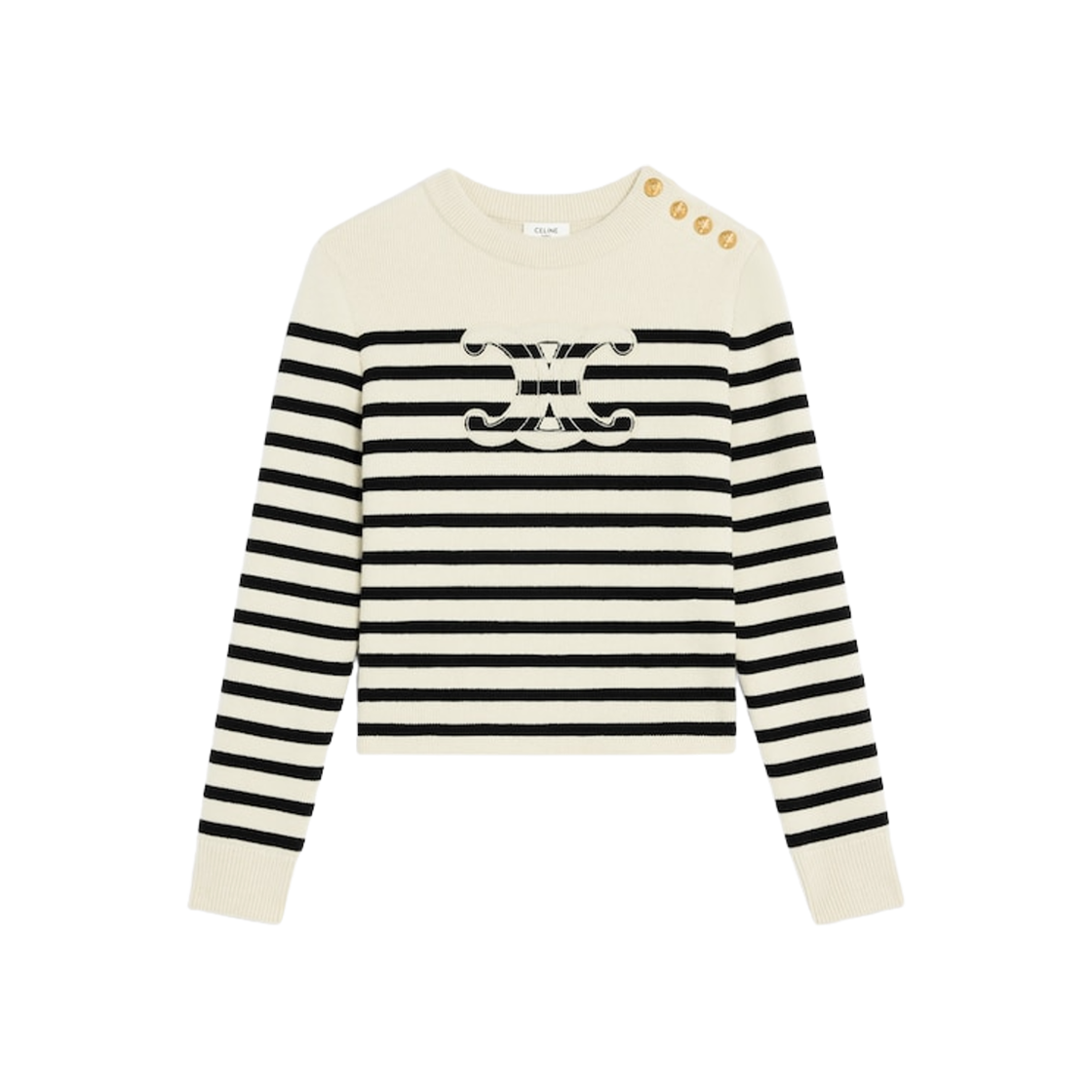 (W) 셀린느 울 캐시미어 크루넥 스웨터 에크루 블랙