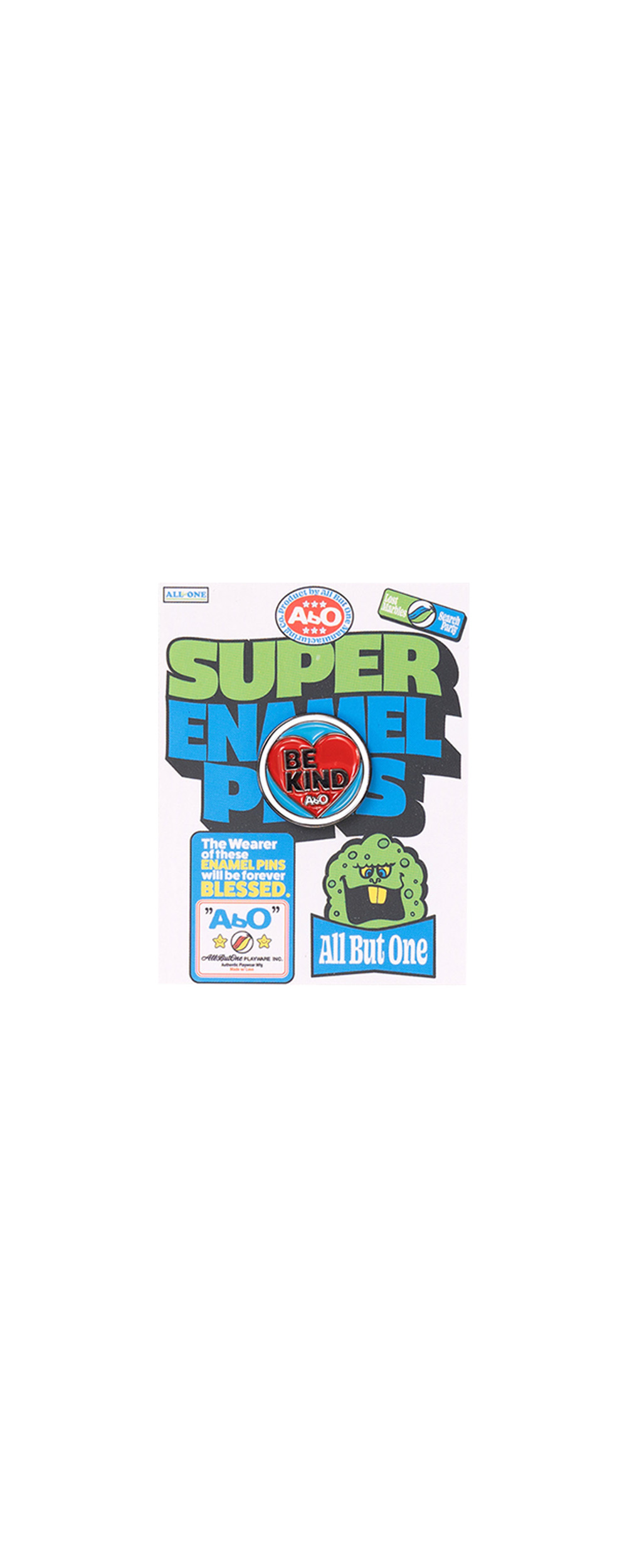 * BE KIND 문구 디자인의 핀 뱃지 * 후면은 샌드블라스티드 가공 진행 * 탈착이 쉽고 내구성이 좋은 고무 소재의 고정핀 사용 * Metal 100% * Made In China