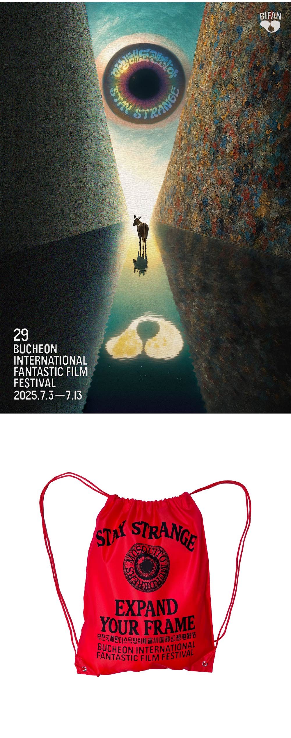 [판매기간 2025. 6.26 ~ 7.1 오전 11시] Expand your frame 장르의 경계를 허무는 독창적 스토리와 상상력으로 가득한, 제29회 부천국제판타스틱영화제가 오는 2025년 7월 3일부터 13일까지 개최됩니다. 평범한 일상에 놀라움을 더하는 시간, 그 판타스틱한 여정을 함께하세요. 이 환상적인 축제를 기념해, BIFAN X 모스키토 머더러스 한정 아트워크 아이템을 KREAM 단독 선판매, 10% 할인 혜택으로 먼저 만나보세요!