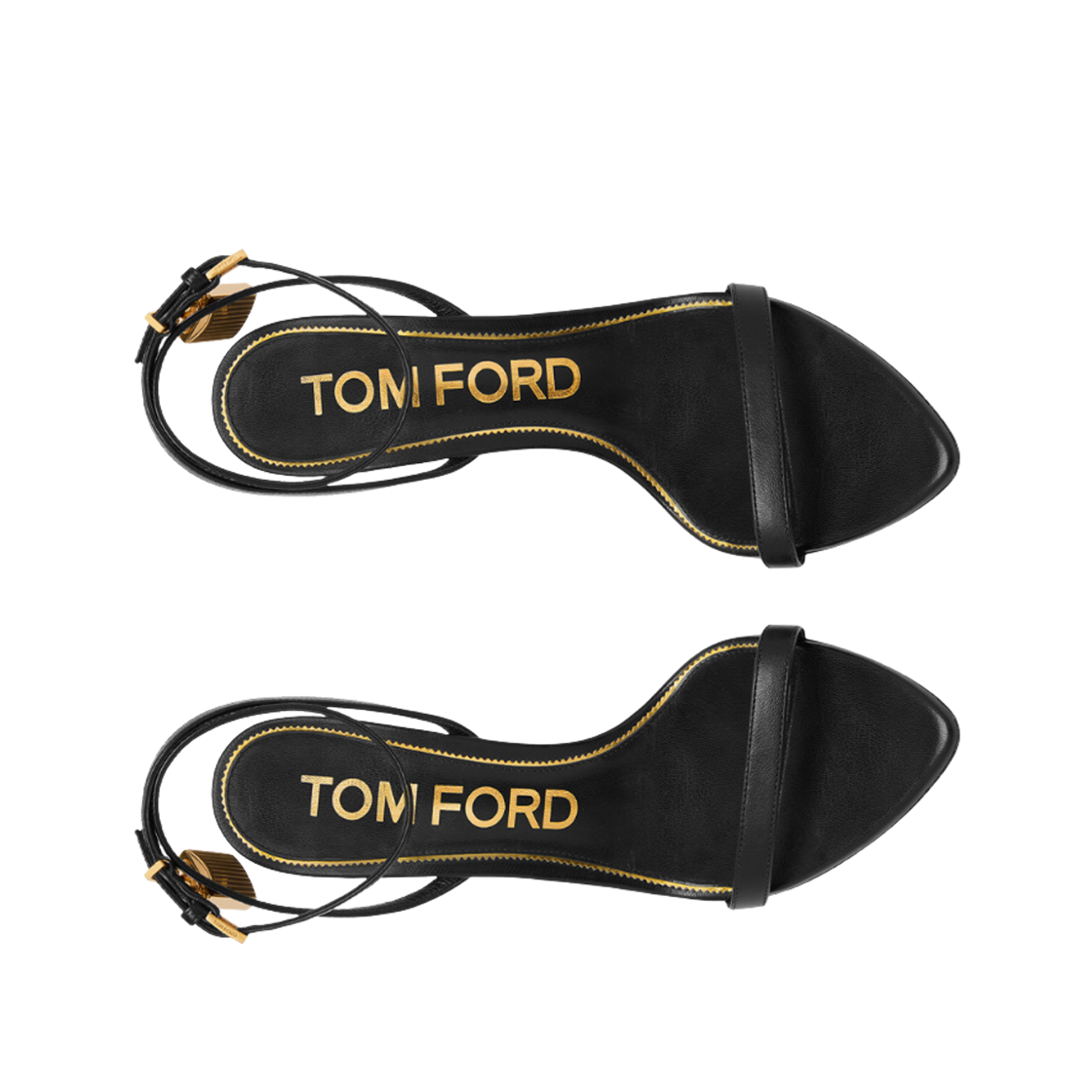 (W) 톰포드 샤이니 레더 패드락 포인티 네이키드 샌들 블랙