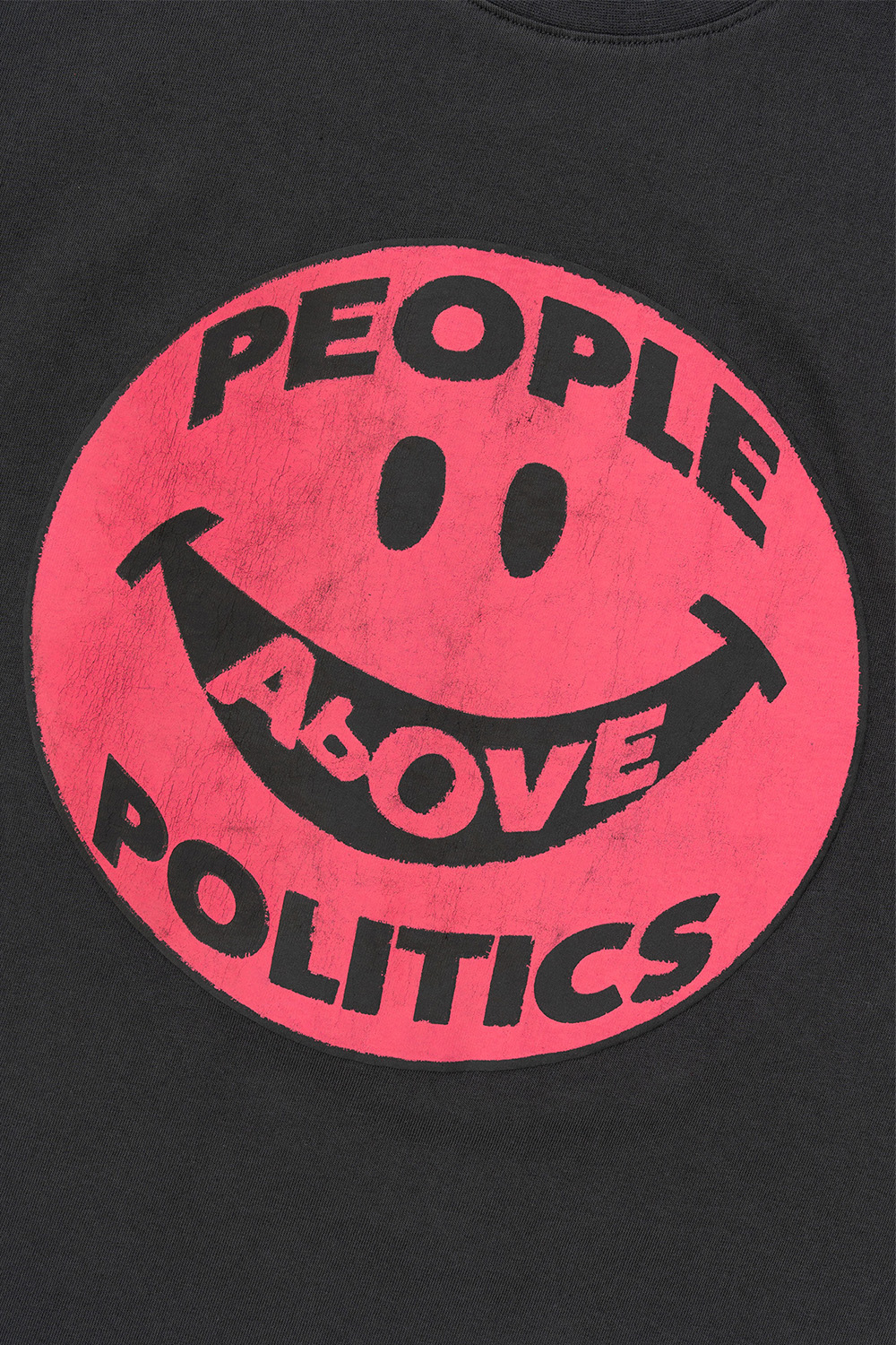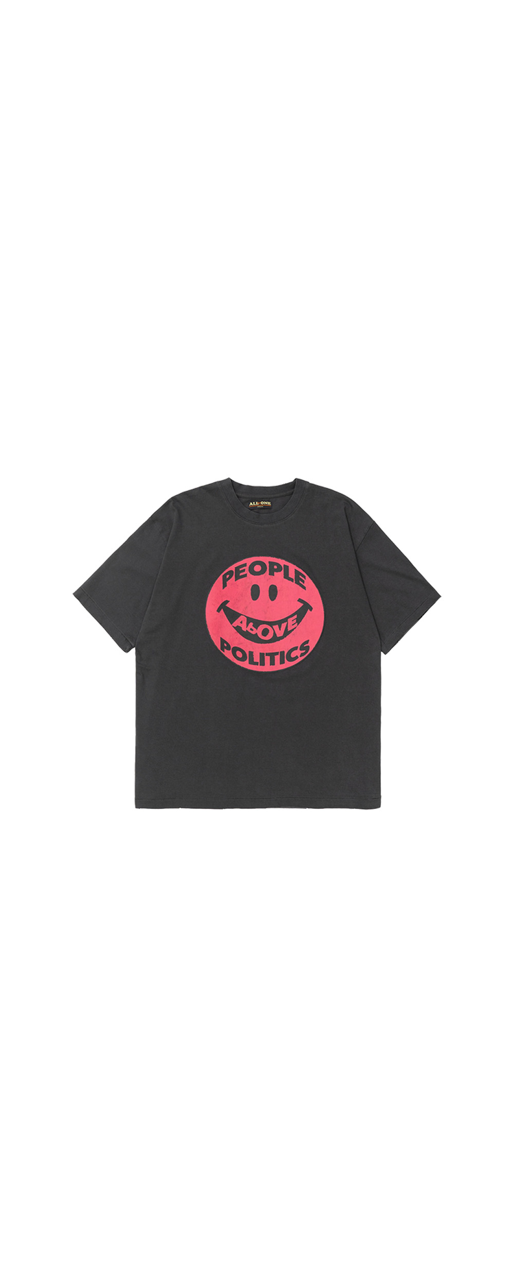 * 핑크색 스마일 캐릭터가 돋보이는 프린트 티셔츠 * 부풀어 오른듯한 퍼프 프린트 사양 * 빈티지한 워싱 가공과 데미지 디테일 * 그런지한 분위기 연출 * 싱글 스티치 봉제 사양 * Cotton 100% * Made In Korea