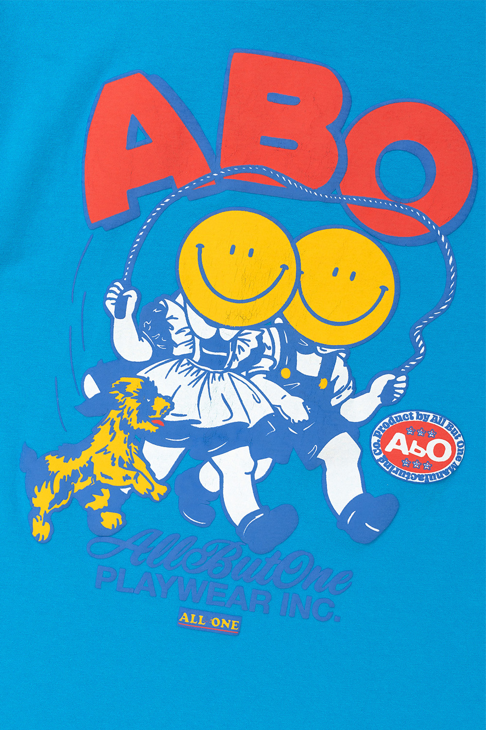 * 줄넘기를 하는 스마일 캐릭터가 프린트 티셔츠 * 부풀어 오른듯한 퍼프 프린트 사양 * 빈티지한 워싱 가공과 데미지 디테일 * 그런지한 분위기 연출 * 싱글 스티치 봉제 사양 * Cotton 100% * Made In Korea