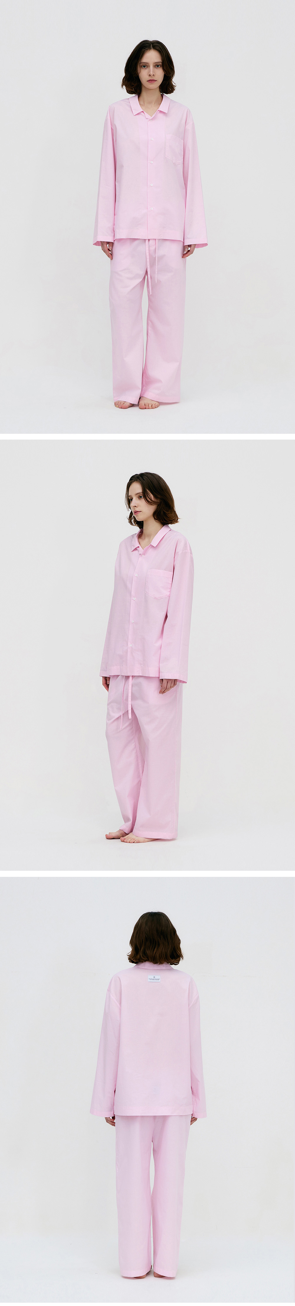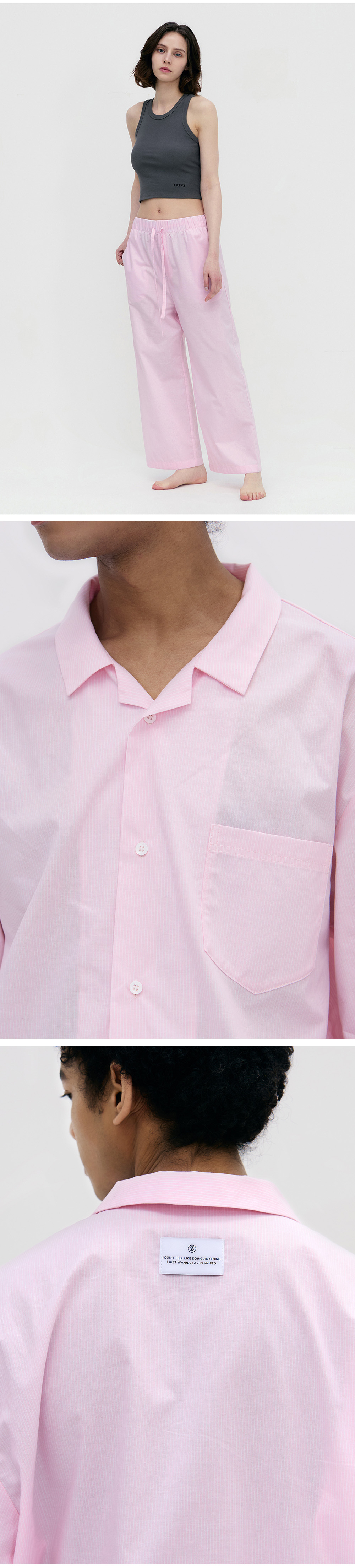 레이지지 스테이 파자마 롱 셔츠 팬츠 세트 로우 핑크