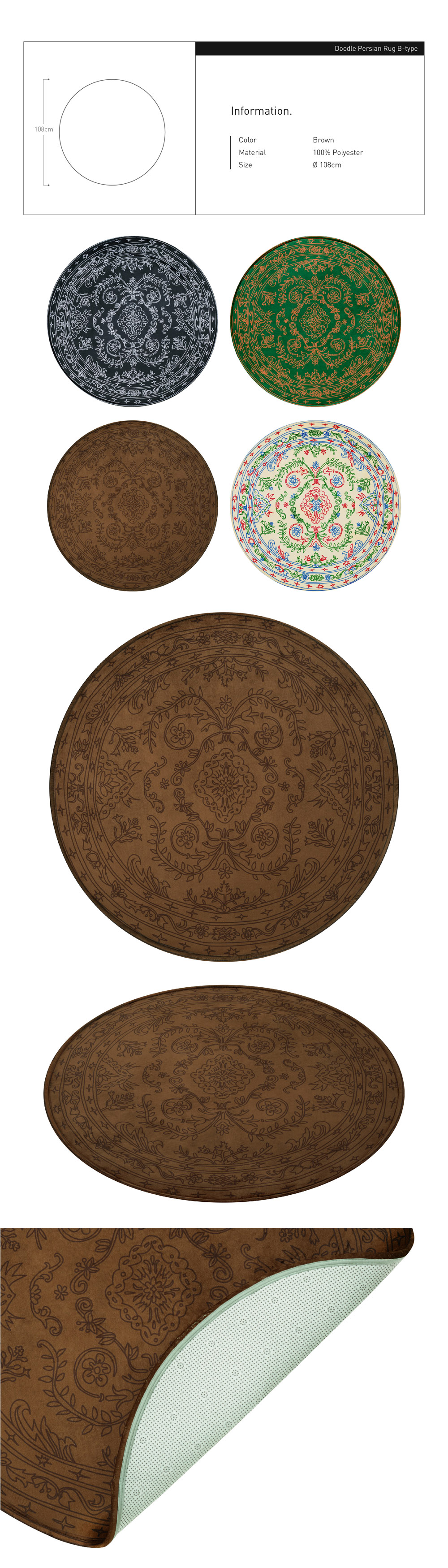 세이투셰 두들 페르시안 원형 러그 브라운