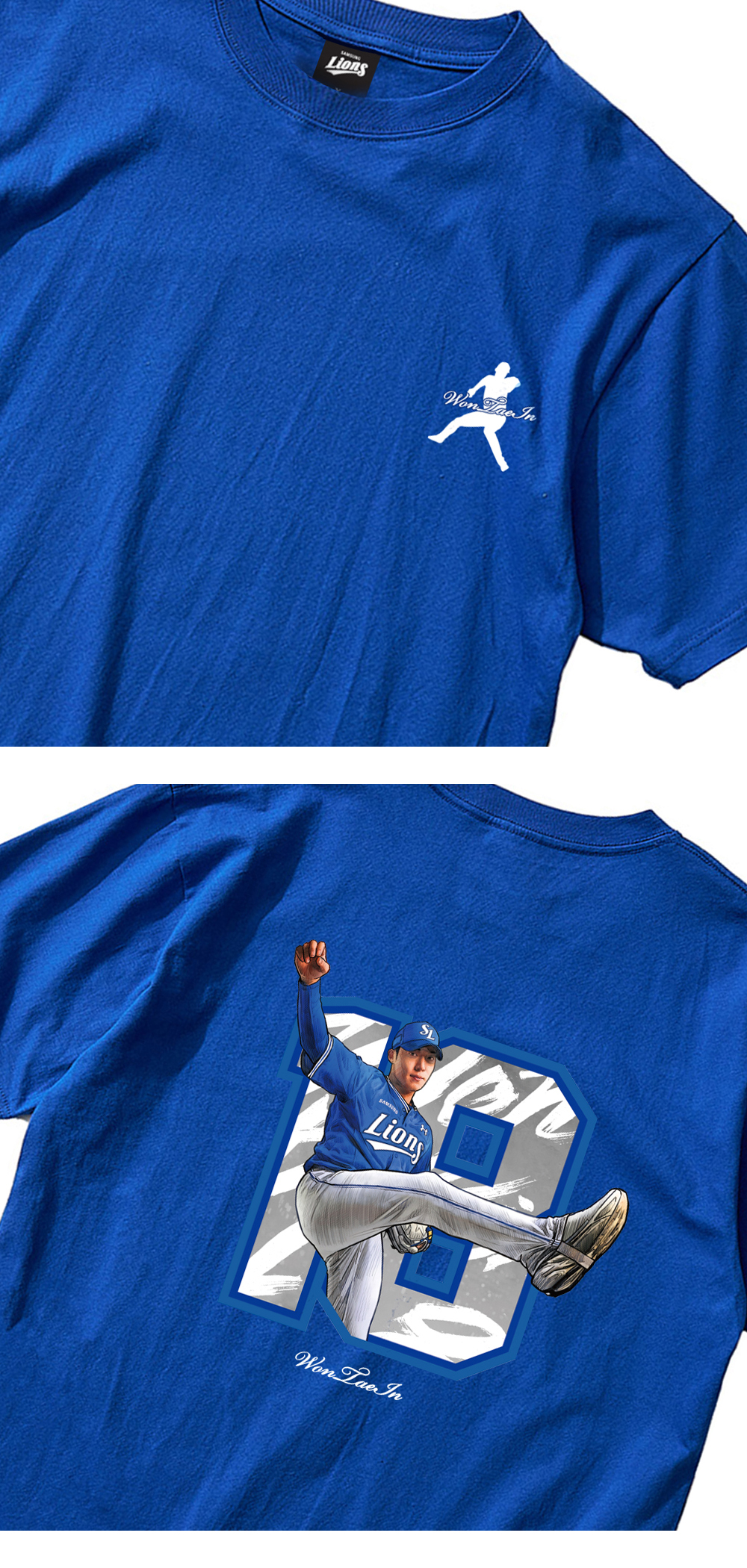 [예약배송] Samsung Lions Player Illustration T-Shirt WonTaeIn Blue