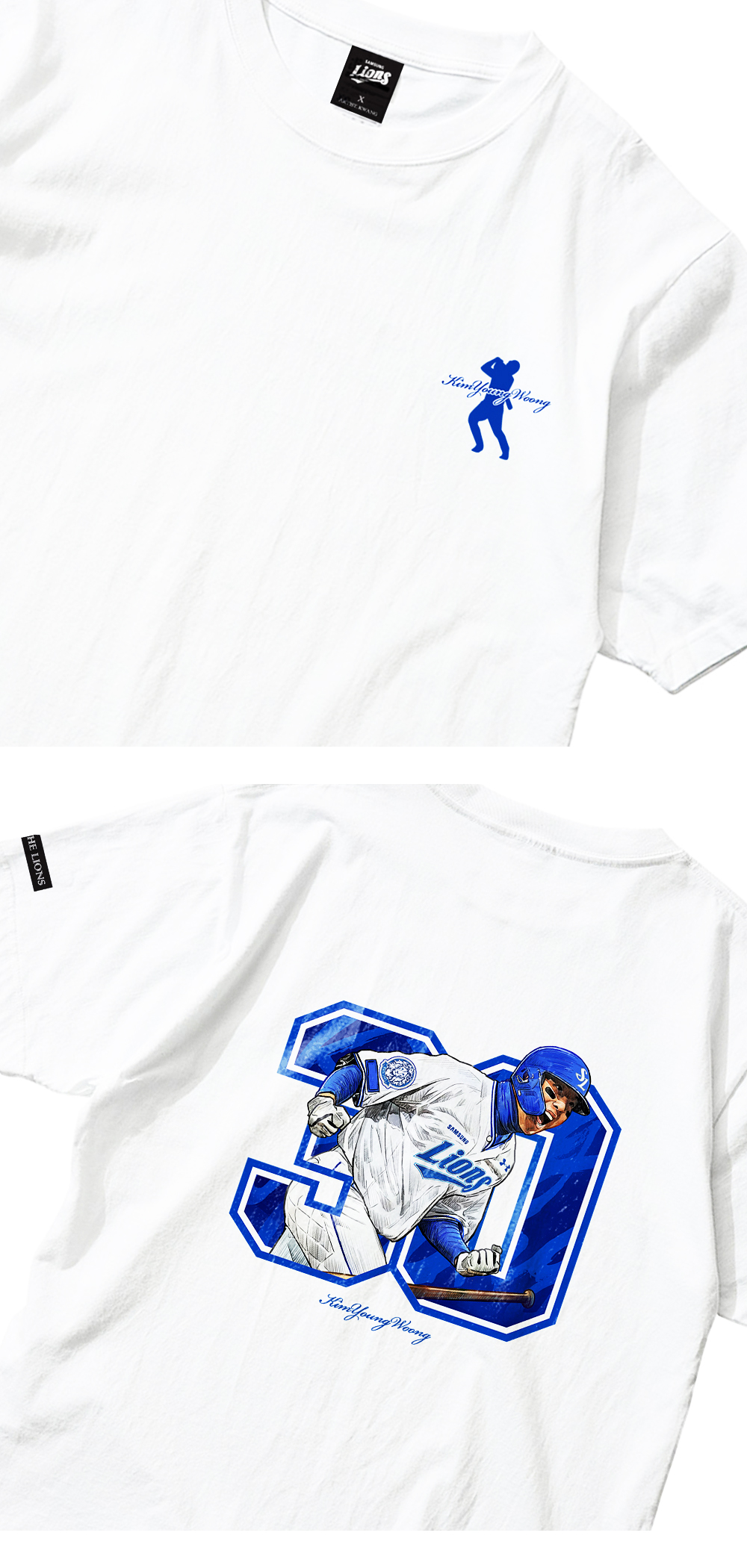 [예약배송] Samsung Lions Player Illustration T-Shirt KimYoung Woong White