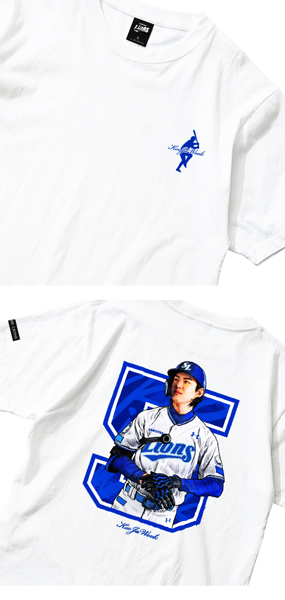 [예약배송] Samsung Lions Player Illustration T-Shirt KooJaWook White