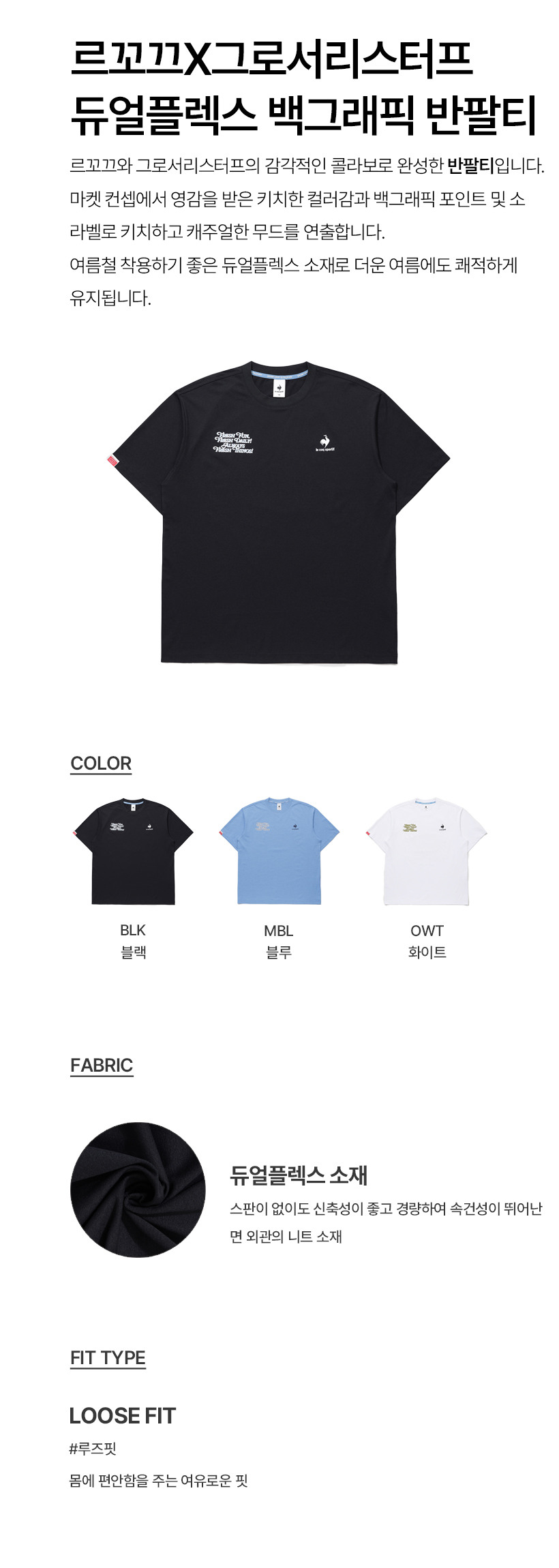르꼬끄 스포르티브 르꼬끄X그로서리스터프 유니 듀얼플렉스 반팔티 - 블랙(QQ223LRS47)