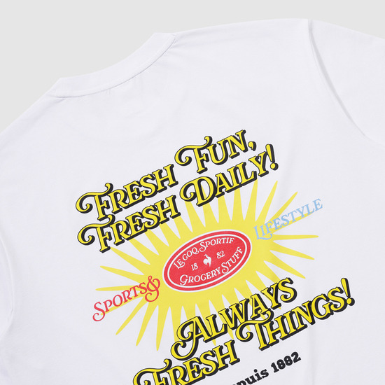 le coq sportif Grocery Stuff X LCS Dual-Flex Back Graphic Short Sleeve T-Shirt Off-White