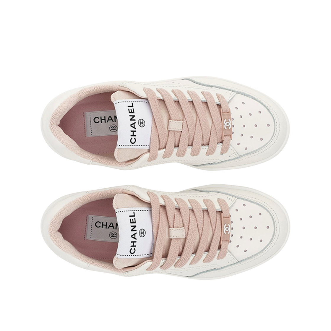 (W) Chanel Sneakers Grained Calfskin & White Light Pink