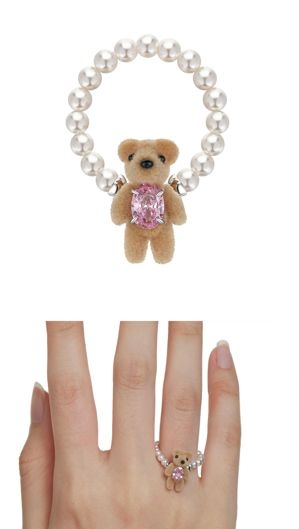 Yvmin Mini Flocked Bear Pearl Ring Pink - 25FW