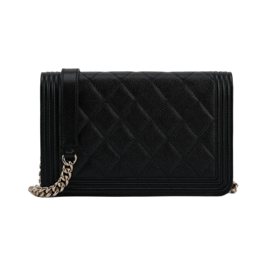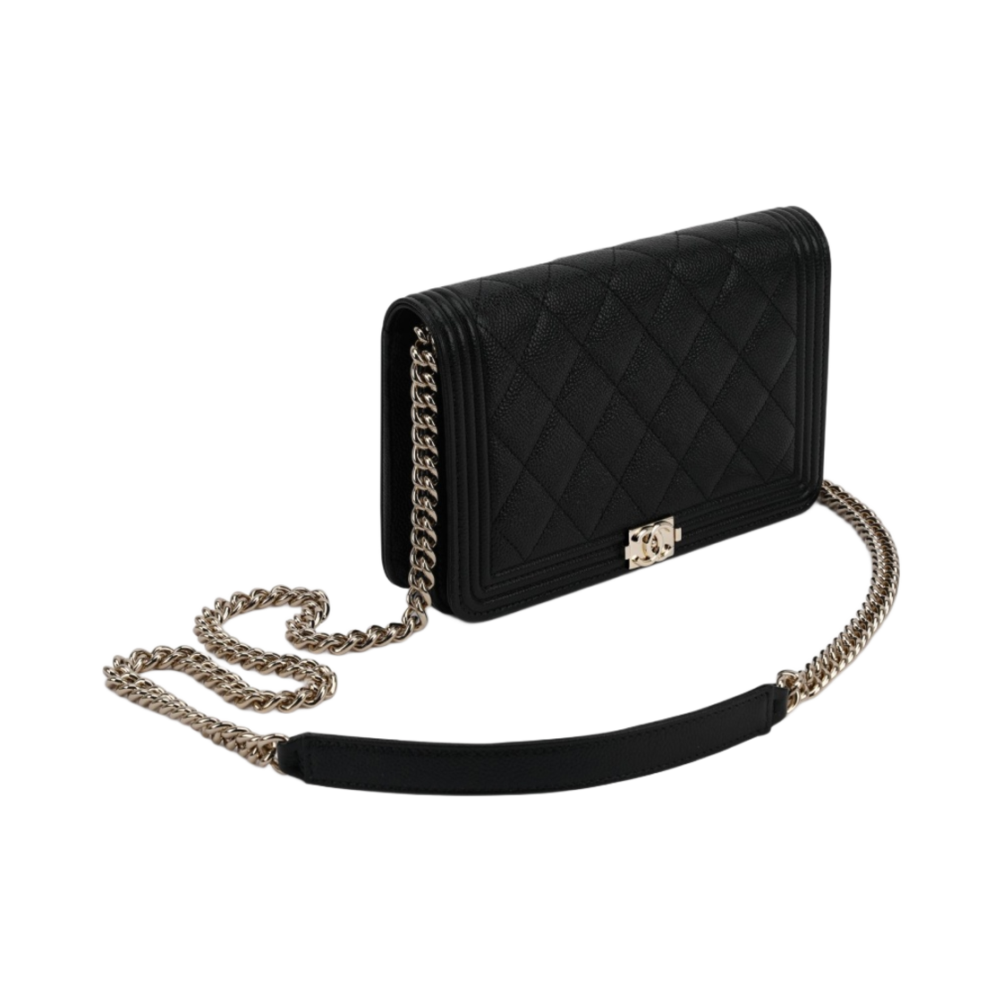 샤넬 보이 샤넬 체인 지갑 그레인드 카프스킨 & 골드 메탈 블랙