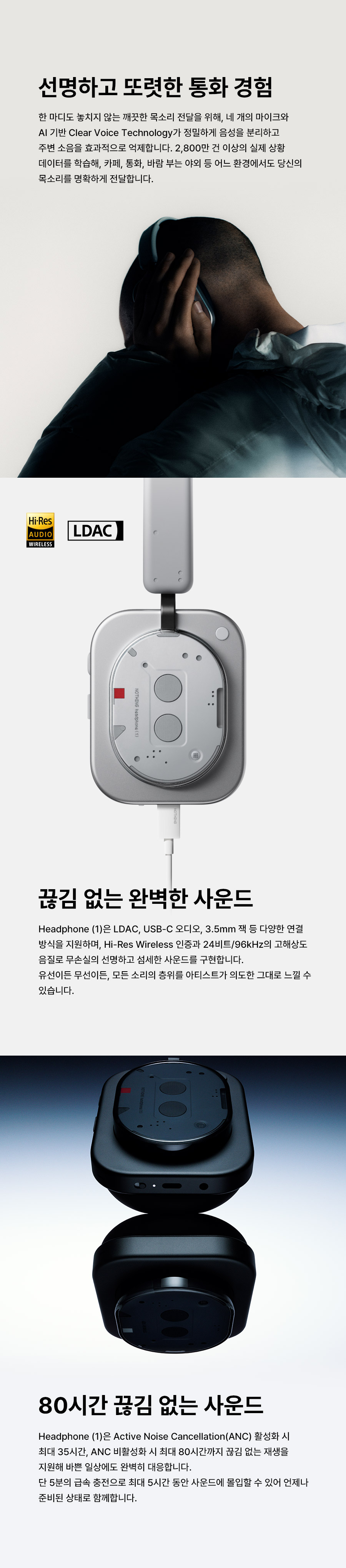 낫싱 헤드폰 (1) 노이즈 캔슬링 블루투스 헤드폰 화이트