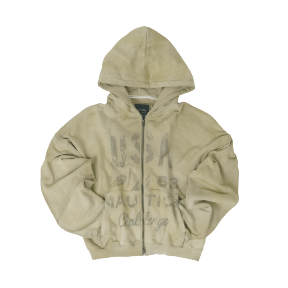 Undermycar x Nautica Damaged Hood Zip Up Beige - 25SS