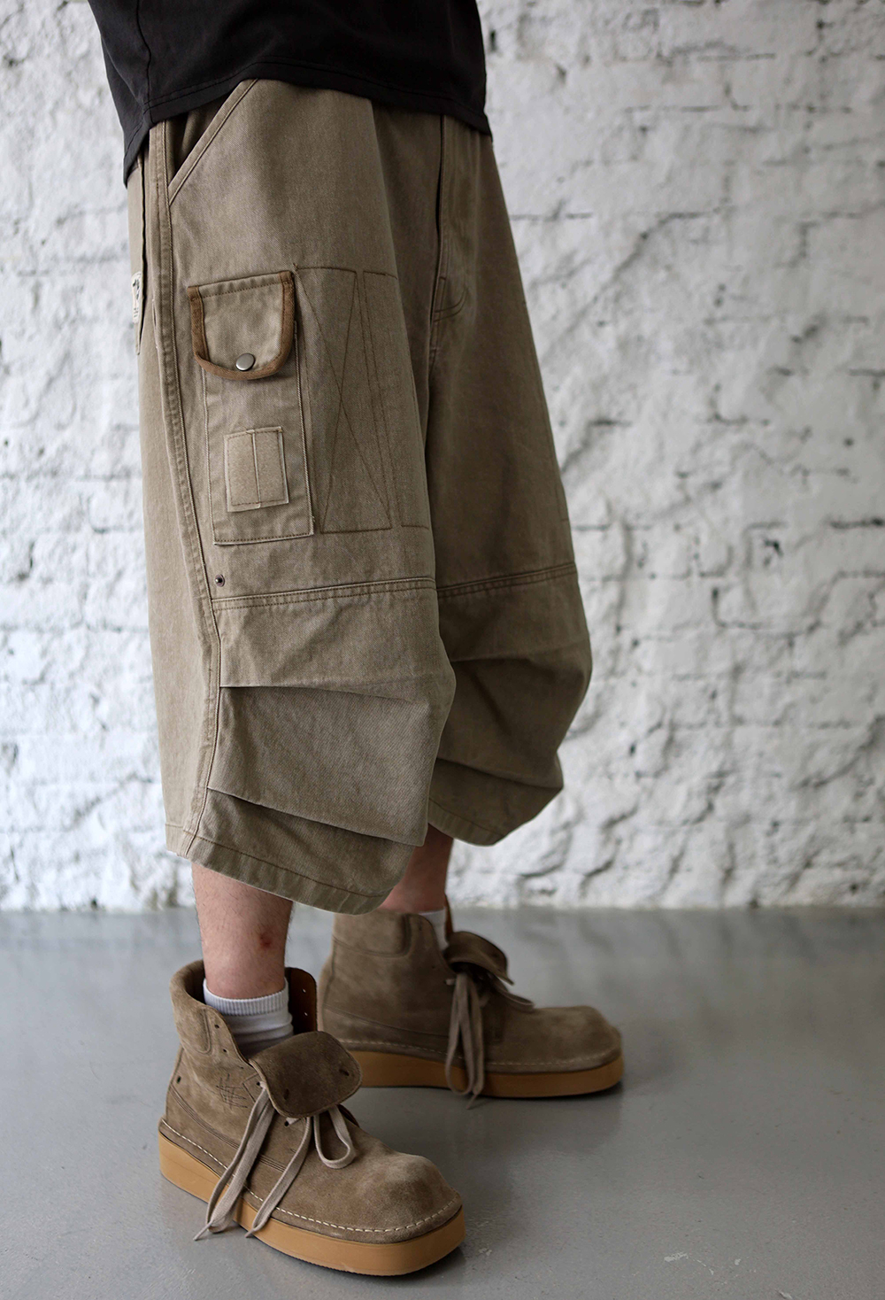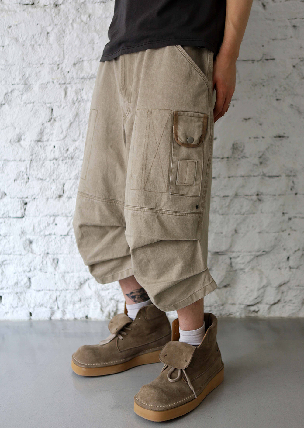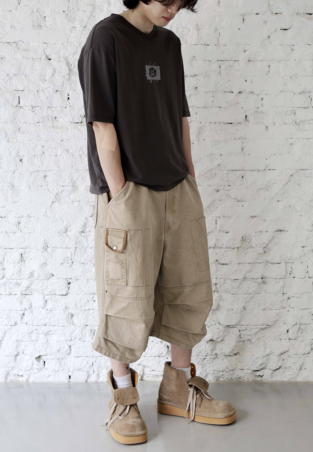 [비트리_다크베이지] 버뮤다 팬츠. 밀리터리에서 영감을 받아 위트있는 디테일들로 재해석한 와이드 핏 버뮤다 팬츠입니다. 자연스럽게 무게중심을 잡아주는 실루엣 위로 다양한 요소들이 빈티지하게 녹여져 있습니다. *소재 - cotton 100% *사이즈 2 : 허리 40 기장 64 허벅지 33 밑단 34 3 : 허리 42 기장 66 허벅지 35 밑단 35 4 : 허리 44 기장 68 허벅지 37 밑단 36 5 : 허리 46 기장 70 허벅지 39 밑단 37 (남)모델 : 키 183cm / 보통 체형 > 5사이즈 착용 (4사이즈 정핏)