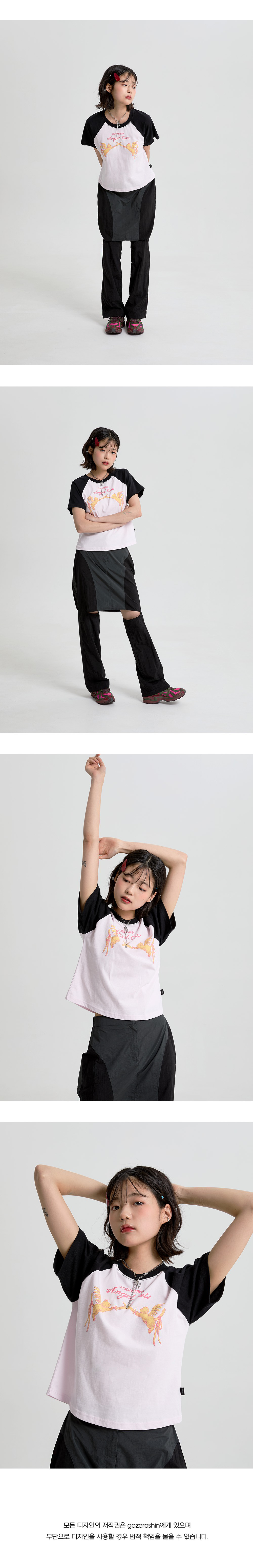 - 좌측 하단에 GODASHIN 시그니처 라벨 사용 - 래글런 배색과 컬러 나염 프린팅으로 포인트 연출 가능 - FREE 사이즈 세미 크롭 (for Women)