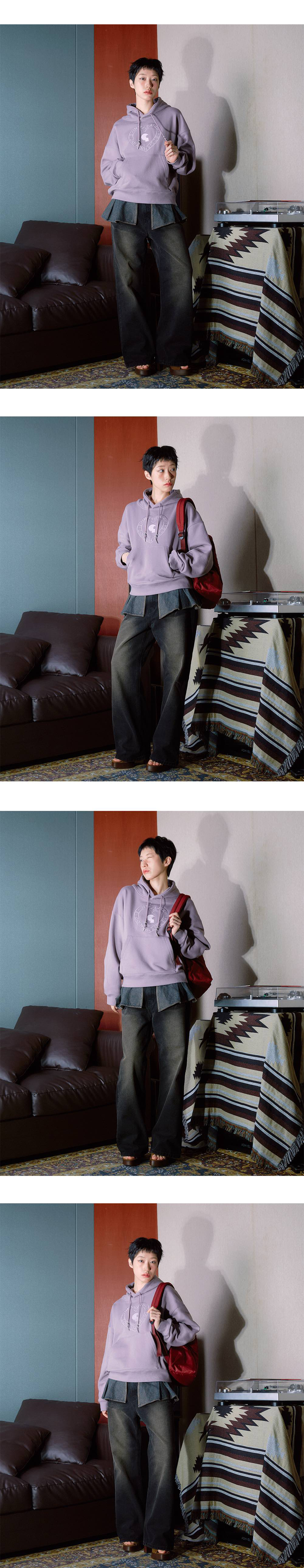 - Cropped Loose Fit - 전면 자수 - 비즈 & 써지컬 스틸 링 디테일