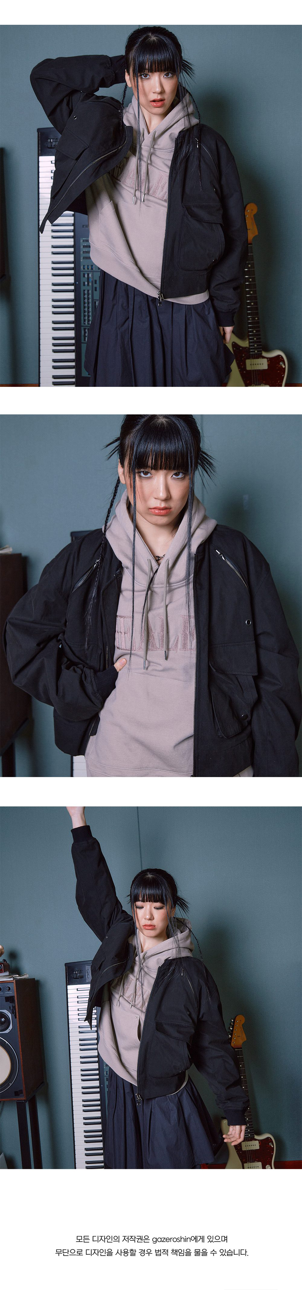 - Cropped Regular Fit - 투웨이 지퍼 사용 - 래글런 라인의 지퍼 포켓과 전면부 이중 구조 포켓으로 높은 실용성과 수납 능력 (소매 페이크 포켓) - 전면 아일렛, 후면 다트 디테일
