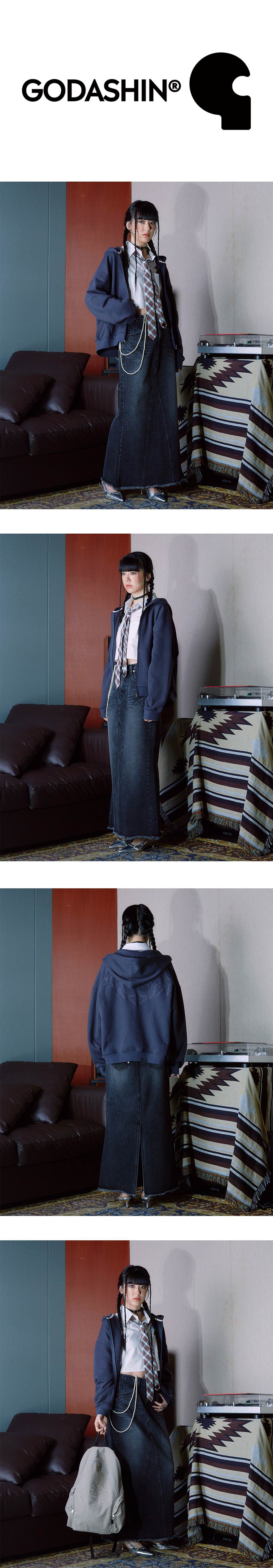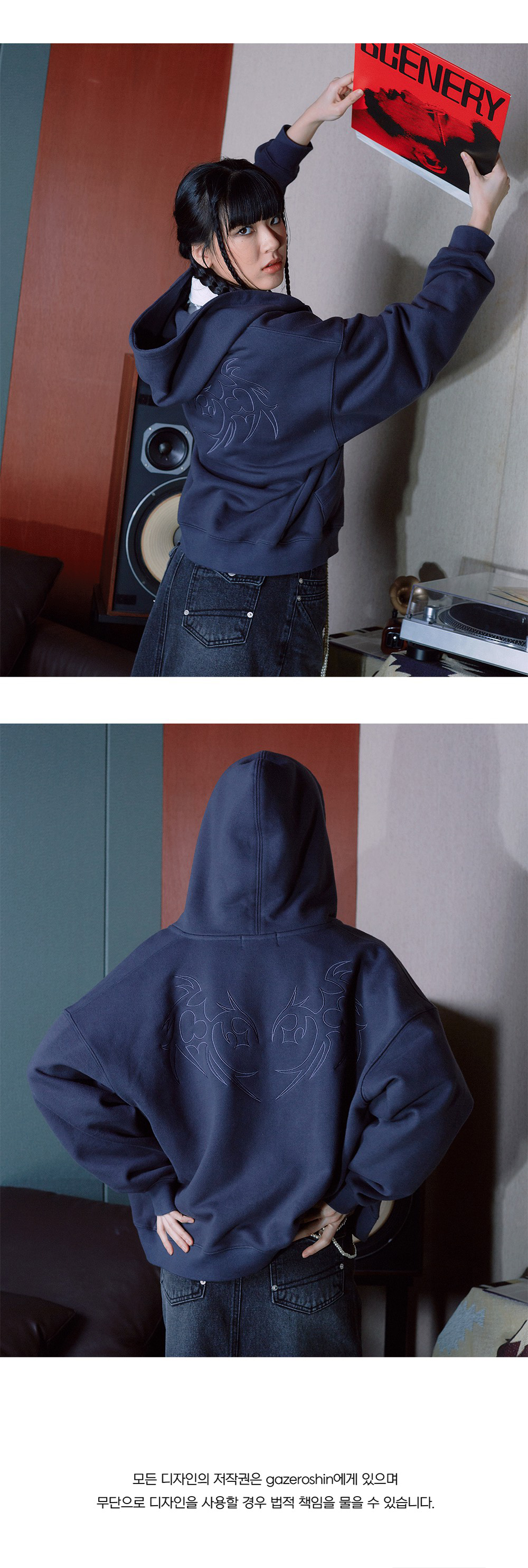 Comment Gazeroshin, 『악마 고양이』 만화에서 파생된 악마의 날개 그래픽입니다. 둥글고 따뜻한 느낌의 하트 모양을 갖고 있지만 그와 반대로 뾰족하게 뻗고 있는 가시 모양도 갖고 있습니다. 영원히 사랑할 테지만 사랑하지 않을 것임을 다짐하는 악마 고양이를 상징하기도 합니다. - Cropped Loose Fit - 후면 자수 - 제품 내부 넥라인 아이보리 생지 바이어스 테이프 사용