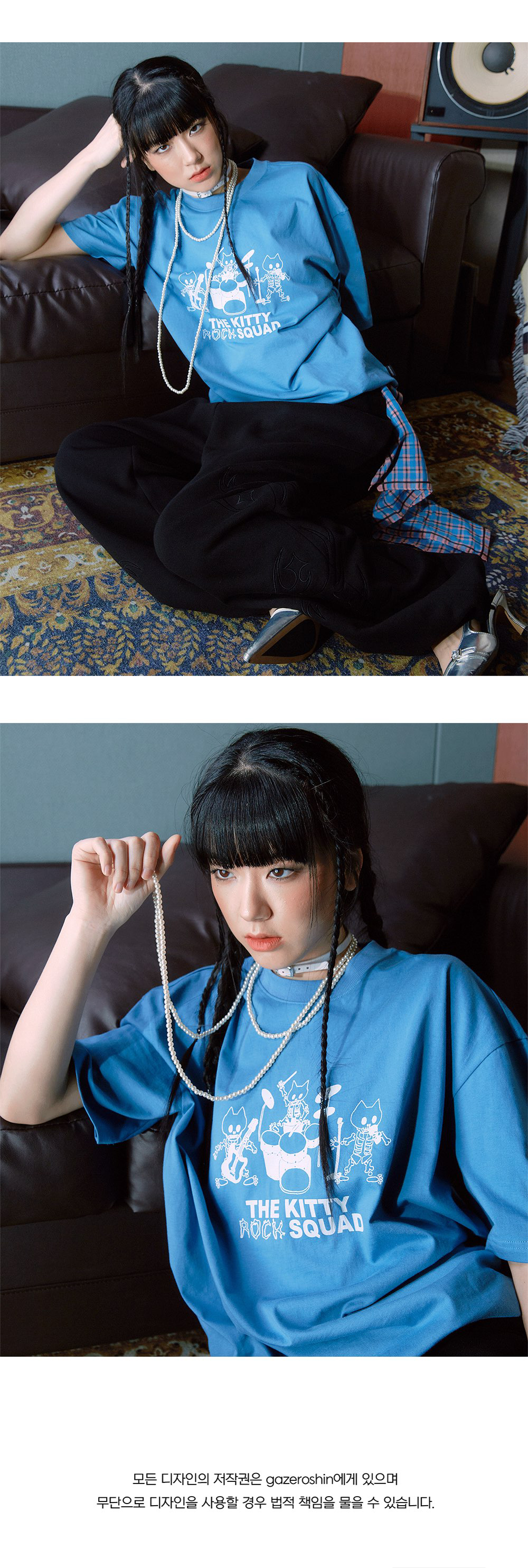 Comment 시간이 지나도 빛을 잃지 않는 뮤지션의 음악적 유산을 재해석해 보았습니다. 그들이 남긴 멜로디는 사라지지 않고 세대를 넘어 많은 이들의 마음 속에서 오래 울려 퍼집니다. 영원히 기억되는 그들의 멜로디처럼 자유롭게 연주하며 감동을 전하는 ‘키티 락 스쿼드’의 모습을 담았습니다. - Loose Fit - 전면 프린팅