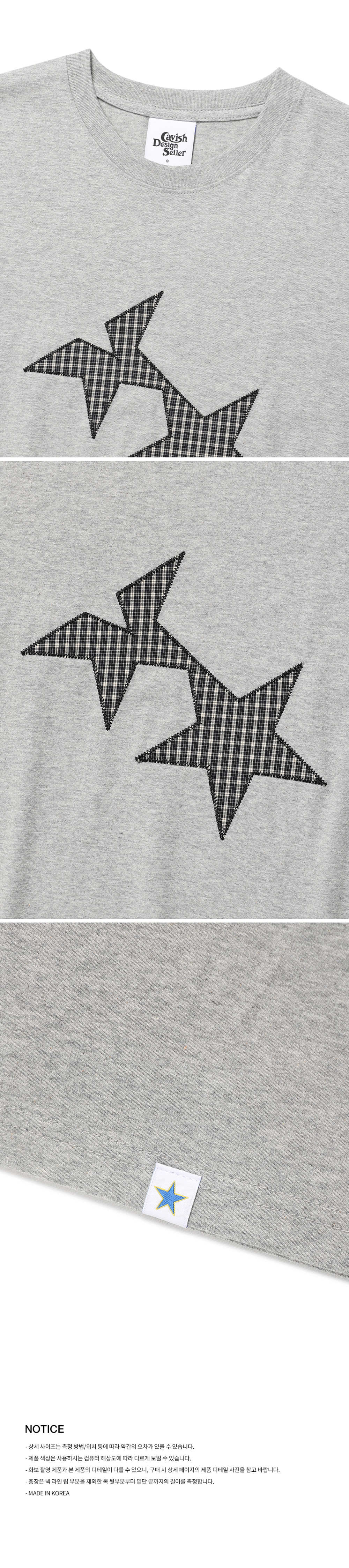 카비시 트윈 스타 체크 아플리케 숏슬리브 티셔츠 그레이