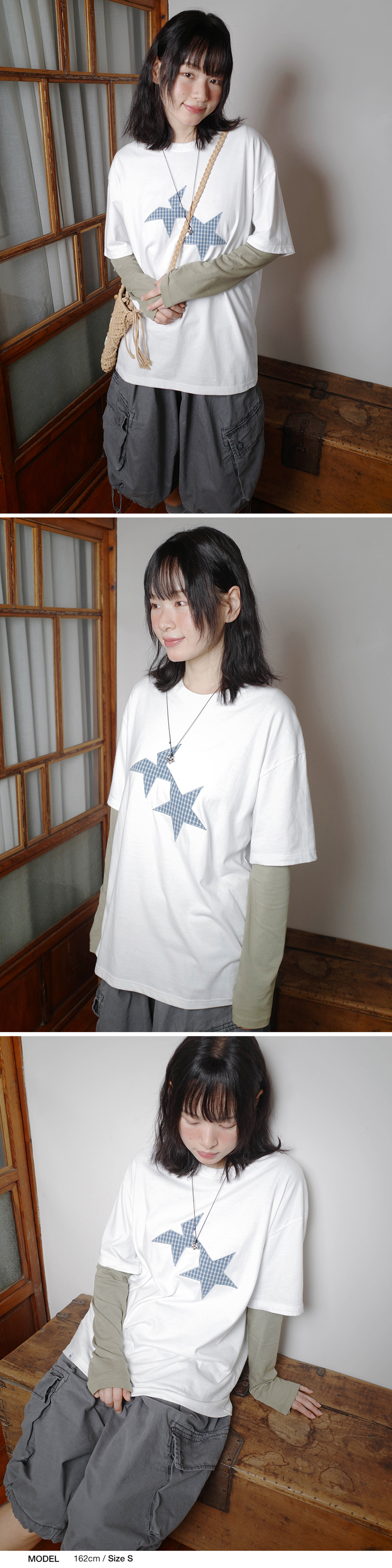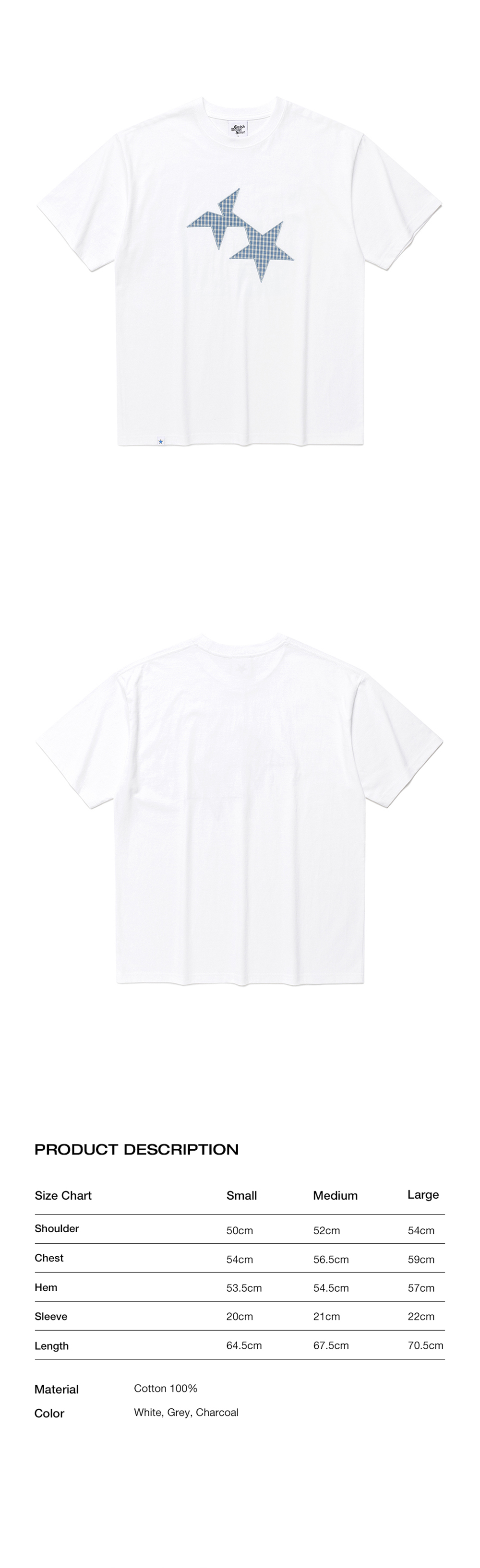 카비시 트윈 스타 체크 아플리케 숏슬리브 티셔츠 화이트