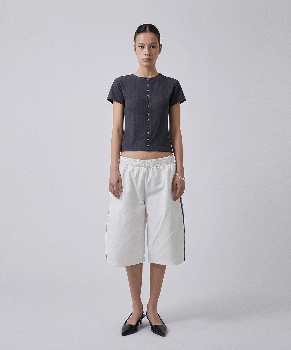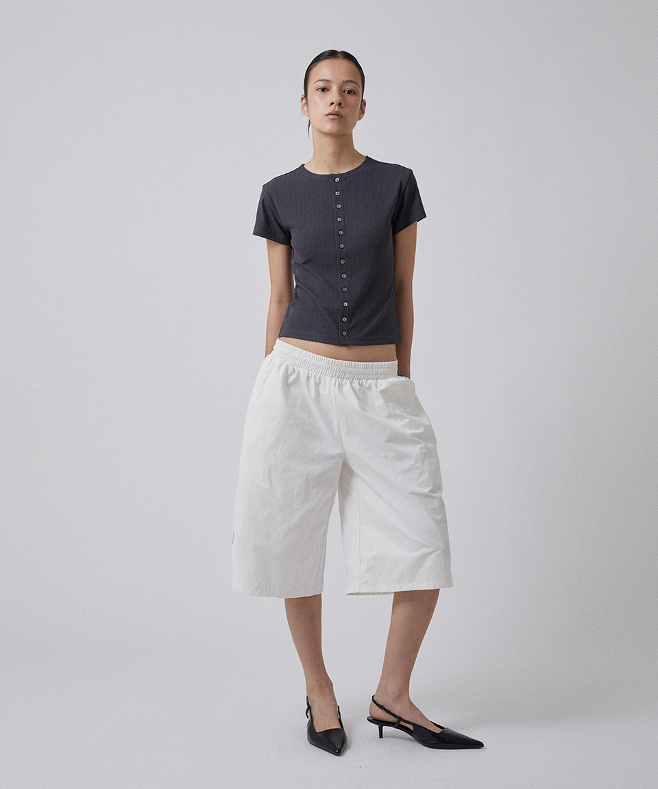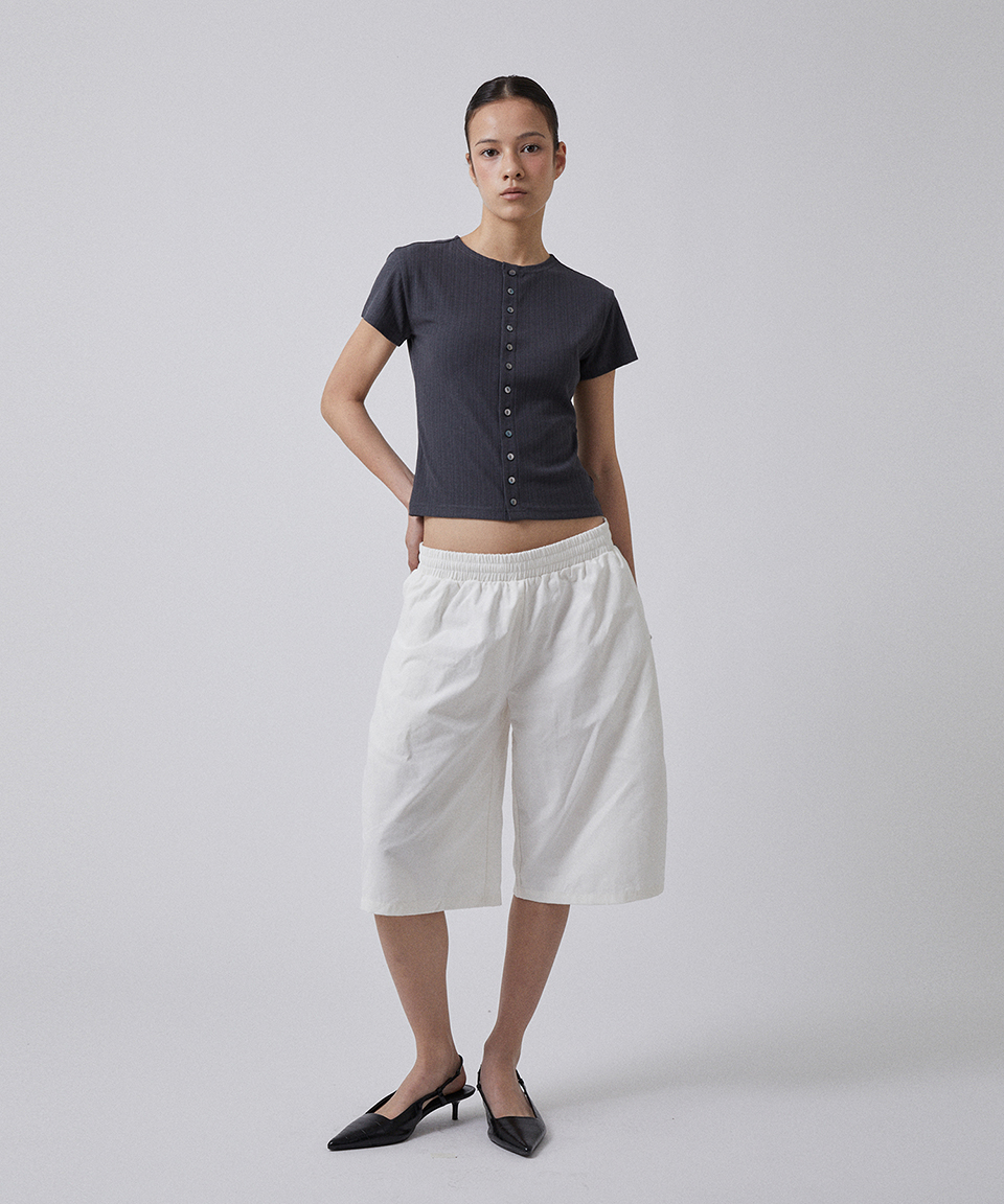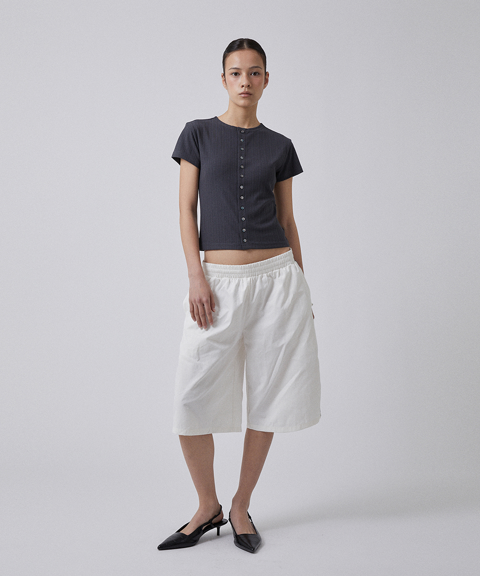 스웨이드 버튼 크롭 티 차콜 그레이