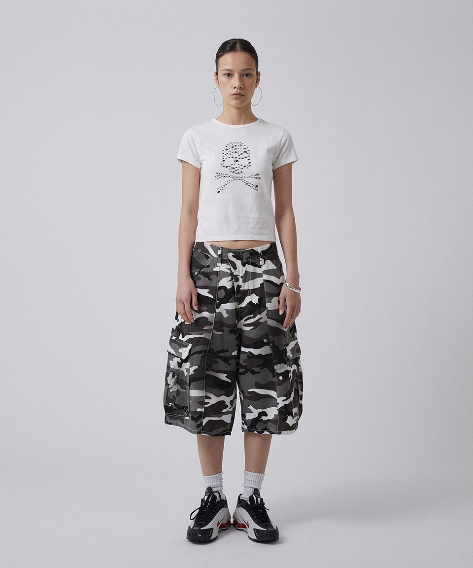 스웨이드 알비노 스컬 크롭 티 오프 화이트