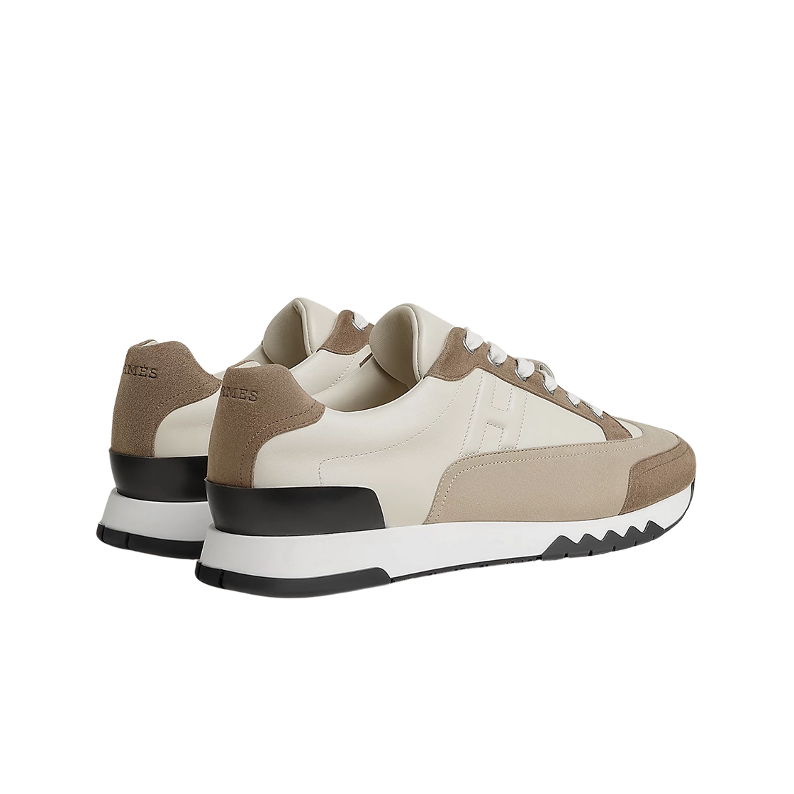 Hermes Trail Sneakers Calfskin Suede Goatskin & Multicolore Beige Glaise