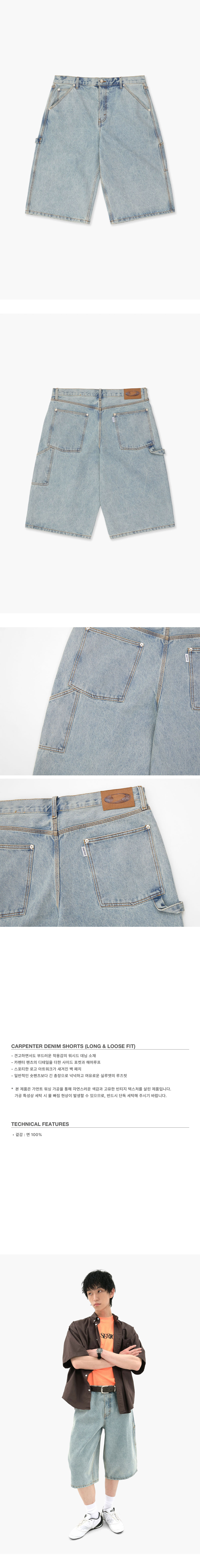 디미토 카펜터 데님 쇼츠 롱 & 로즈 핏 라이트 블루
