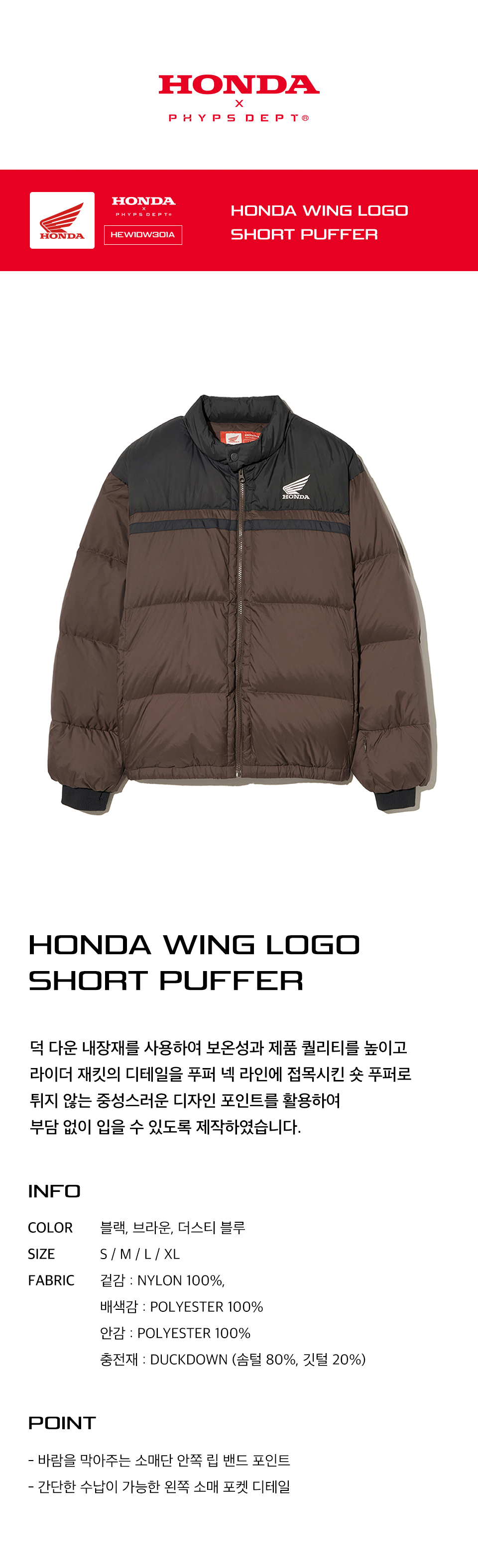 혼다 윙 로고 숏 푸퍼 브라운