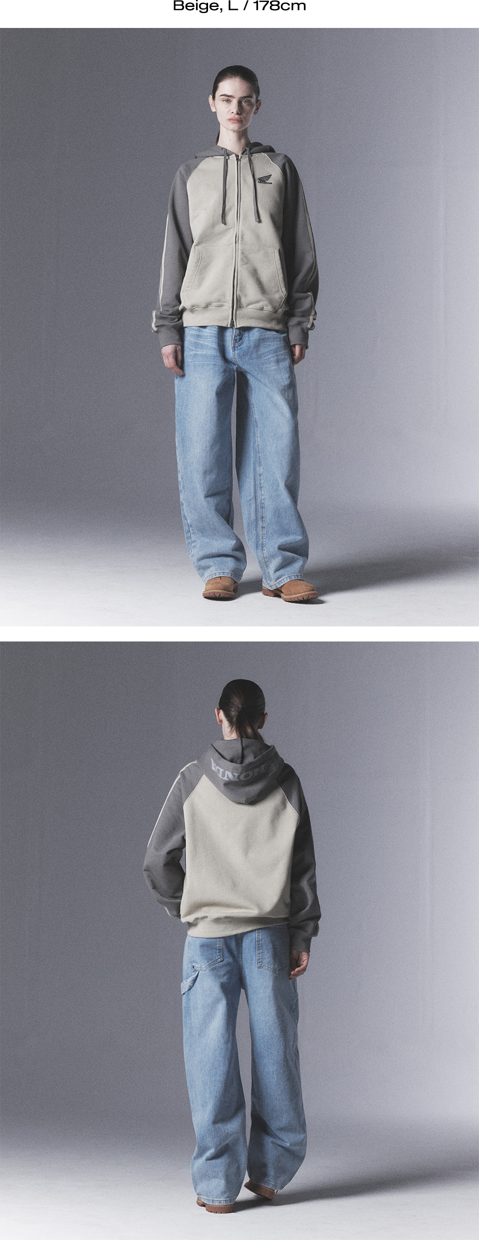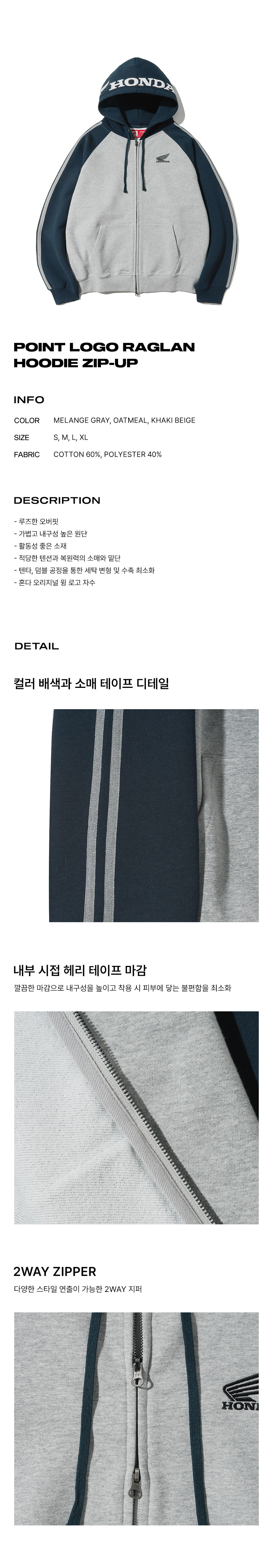 혼다 포인트 로고 래글런 후드집업 그레이