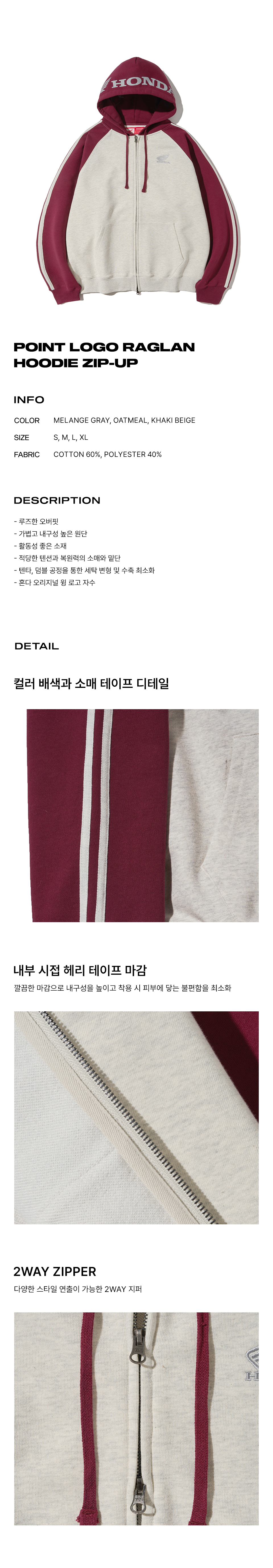 Honda Point logo Raglan Hoodie Zip-up_Oatmeal