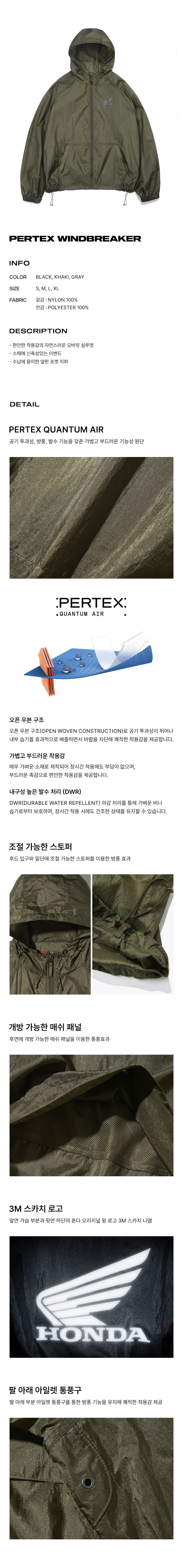 혼다 퍼텍스 윈드 브레이커 카키