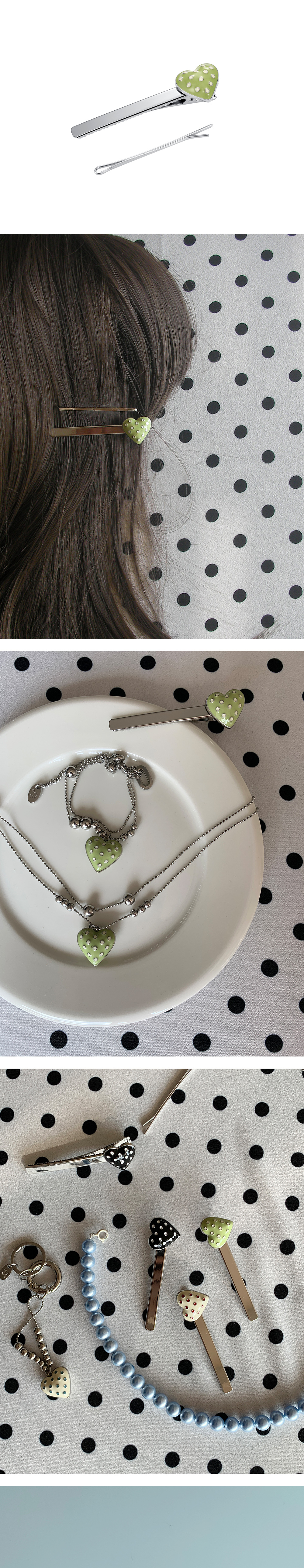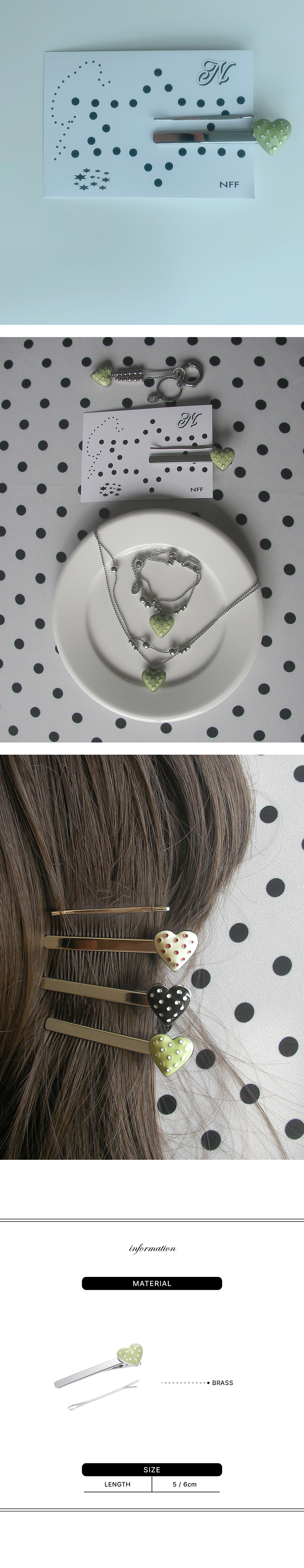 엔프프 도트 하트 헤어핀-올리브