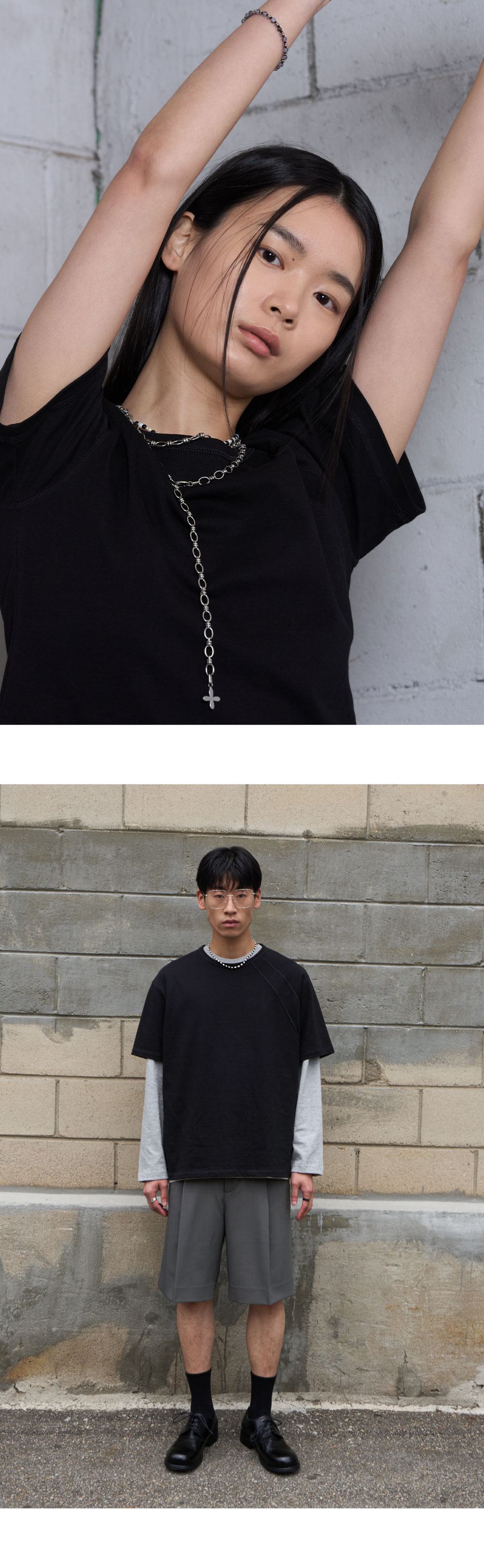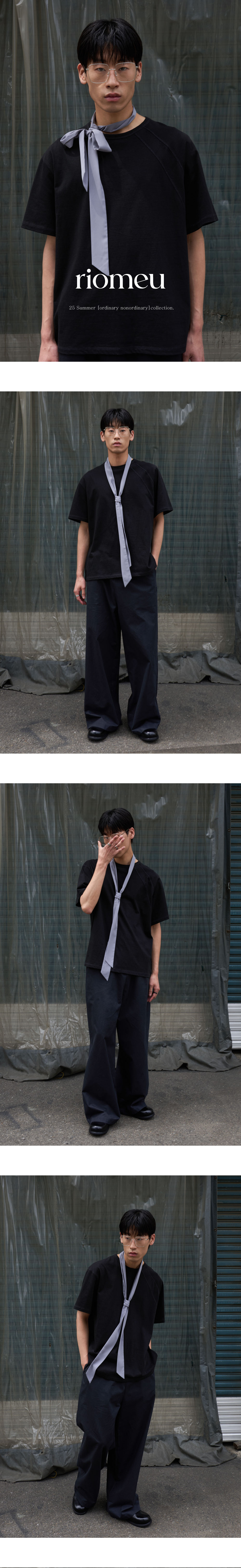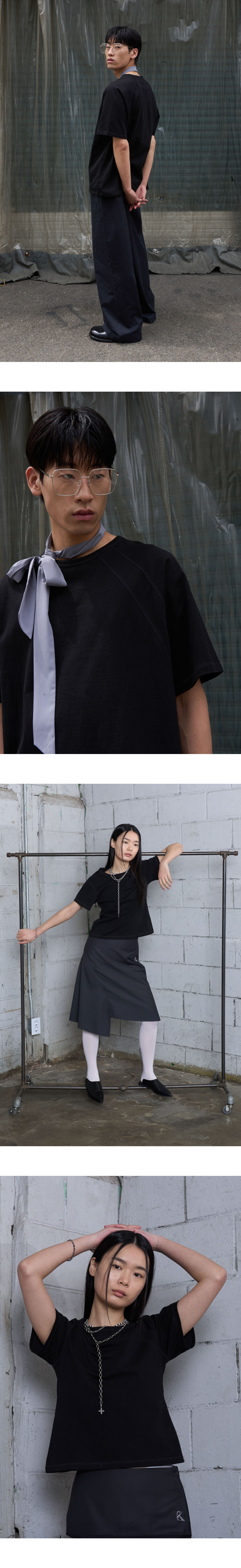 리오므 언발란스 절개 반팔 티셔츠 블랙