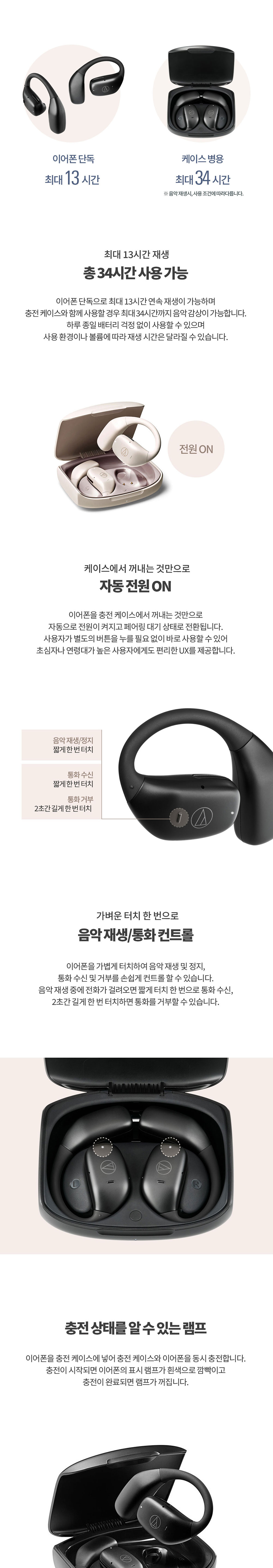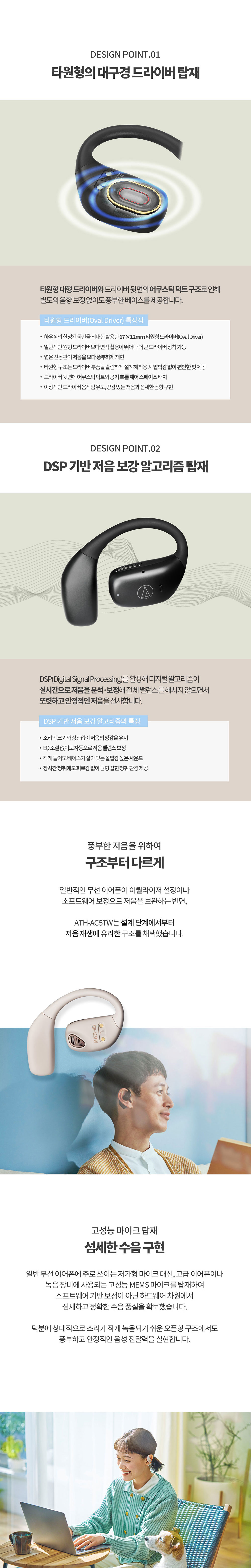 오디오테크니카 공식수입원 ATH-AC5TW 무선 오픈이어 이어폰 화이트