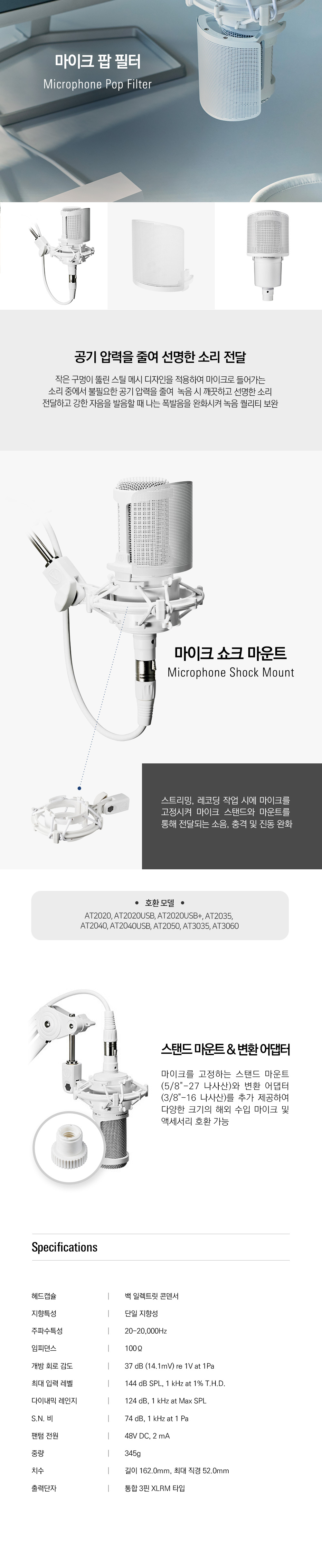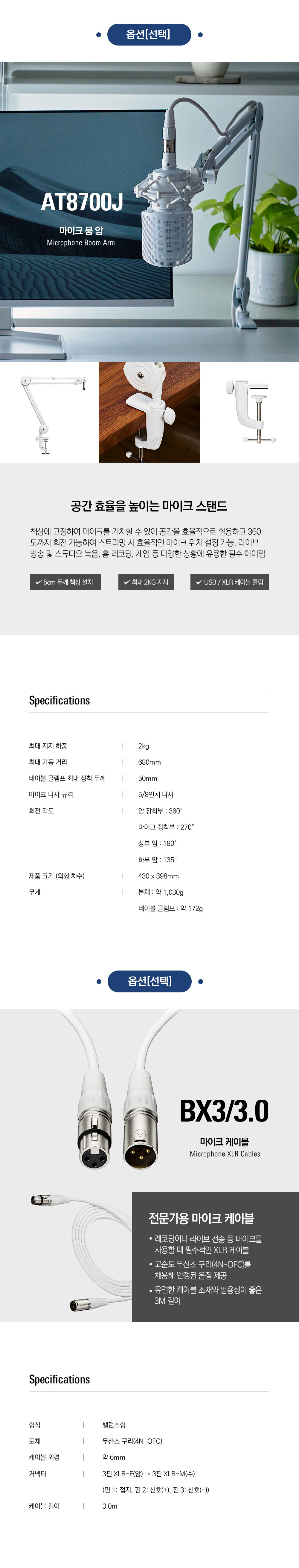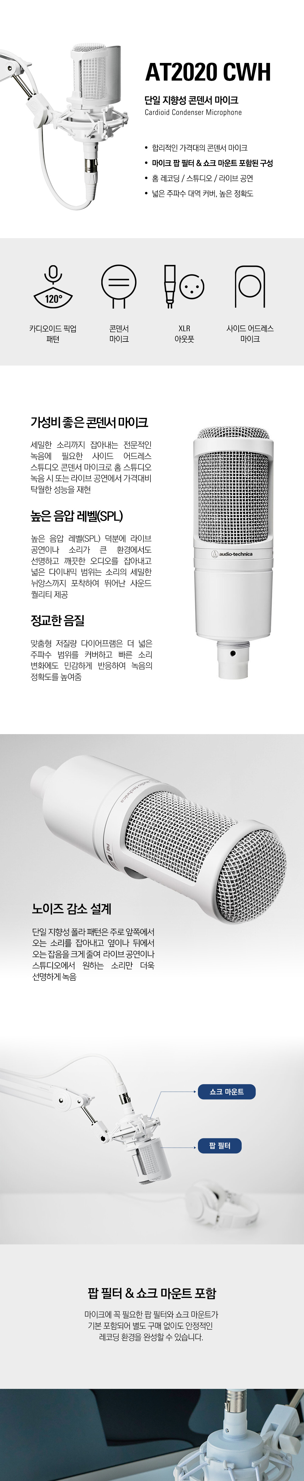 오디오테크니카 공식수입원 AT2020 CWH 단일 지향성 콘덴서 마이크