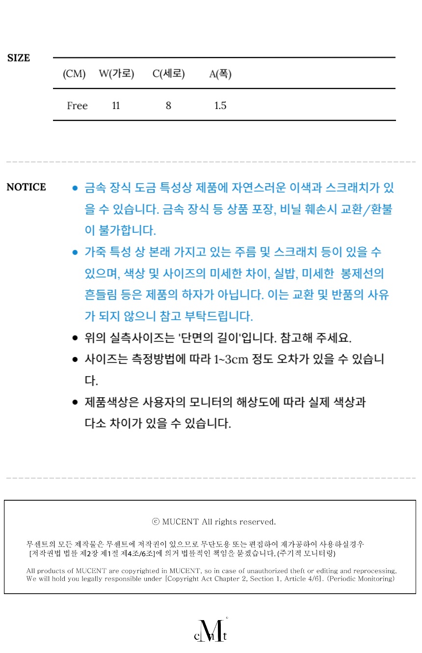 측정 방법에 따라 사이즈에 일부 오차가 있을 수 있습니다.