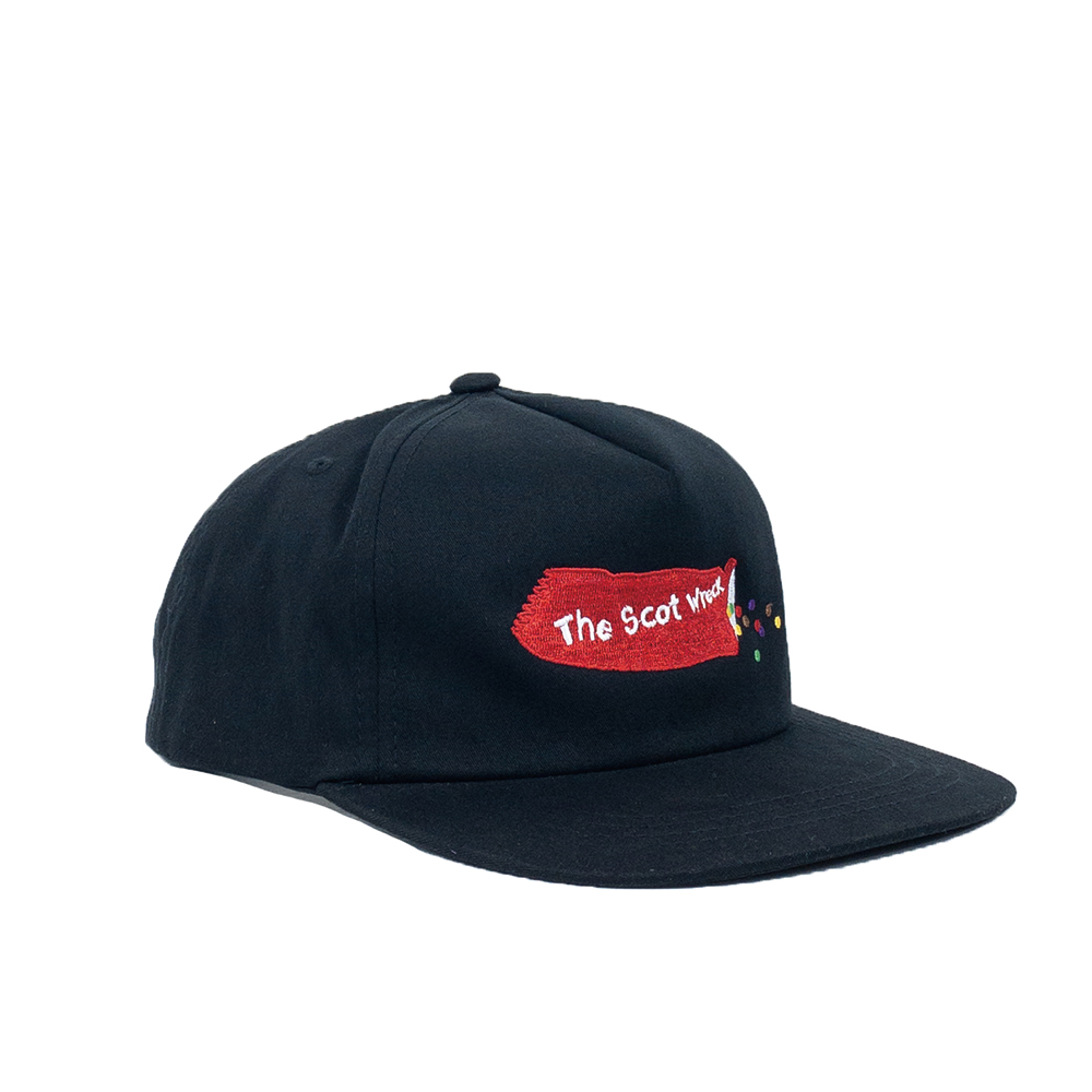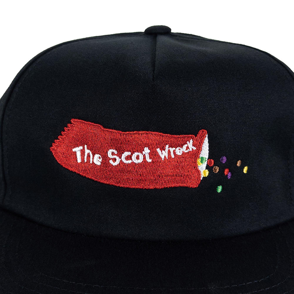 • 5-Panel Hat • Front embroidery • 60% Cotton, 40% Polyester • 'The scot wreck' woven label inside • Visor can be bent to suit your style.