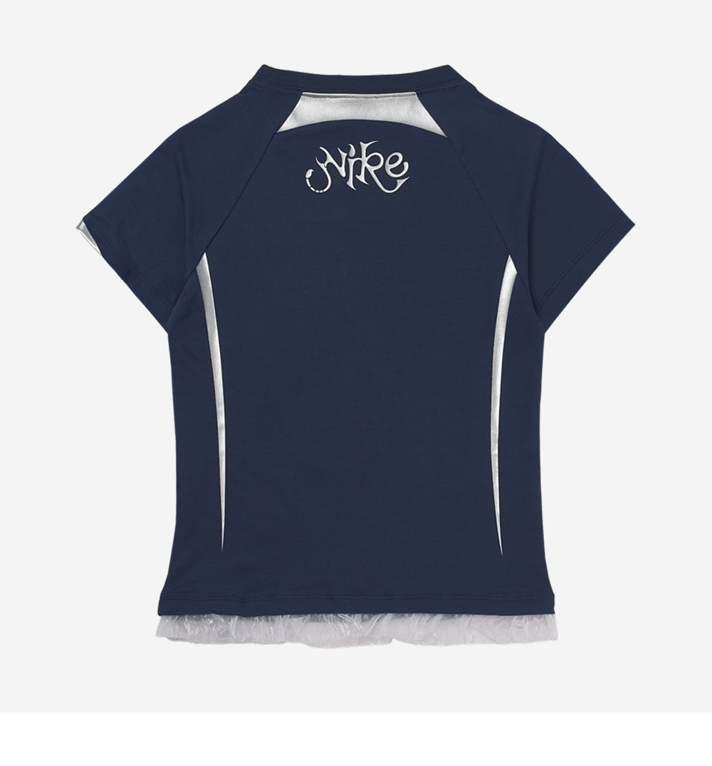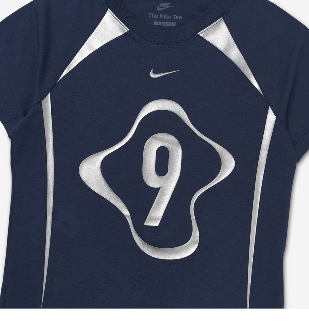 (W) 나이키 NSW 칠 니트 그래픽 티셔츠 미드나잇 네이비