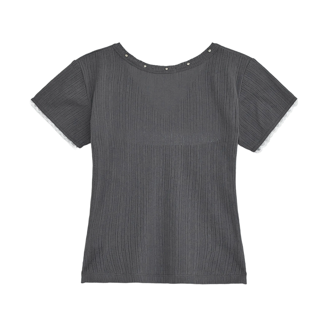 (W) 허그유어스킨 레이스 스터드 탑 차콜