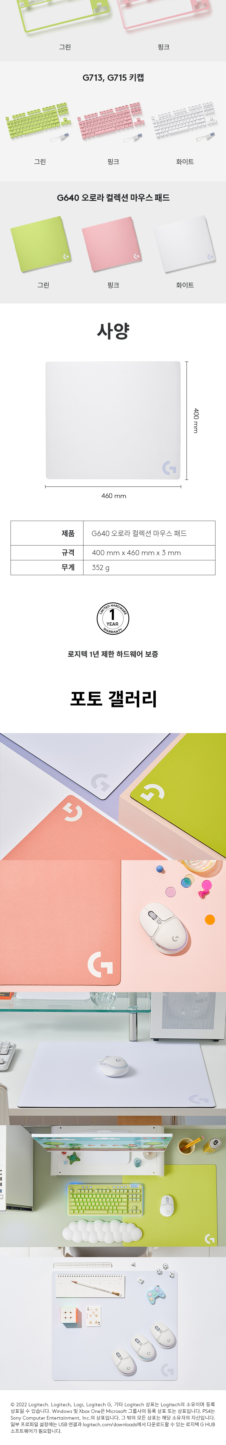 로지텍코리아 공식 G640 오로라 컬렉션 마우스 패드 화이트
