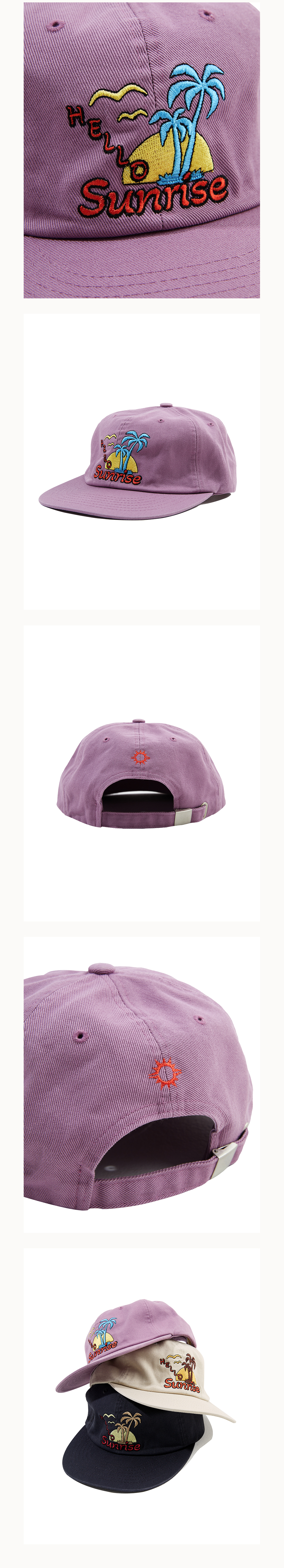 헬로선라이즈 Palm Tree 그래픽이 자수로 들어간 6패널 캡입니다. - 앞판 Palm Tree 그래픽 자수처리 - 워싱 가공으로 빈티지한 무드 - 뒷판 Hello Sunrise 심볼 자수 처리 *모자의 챙을 개인적인 취향에 따라 원하시는 각도로 구부려 착용하시길 권장 드립니다. *모자의 챙이 워싱과정으로 살짝 삐뚤어져보이는 현상은 제품의 불량이 아니므로 반품사유가 되지 않습니다. * Cotton 100% Made in Korea