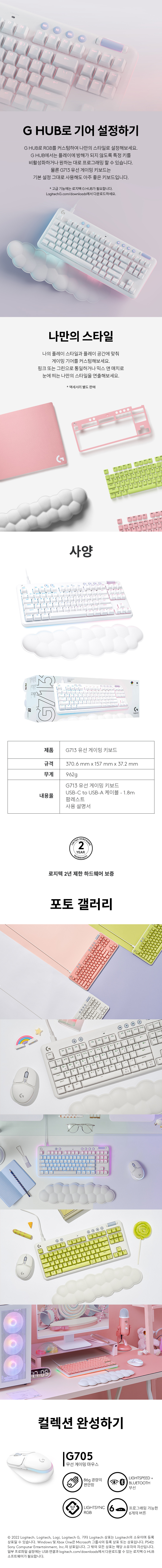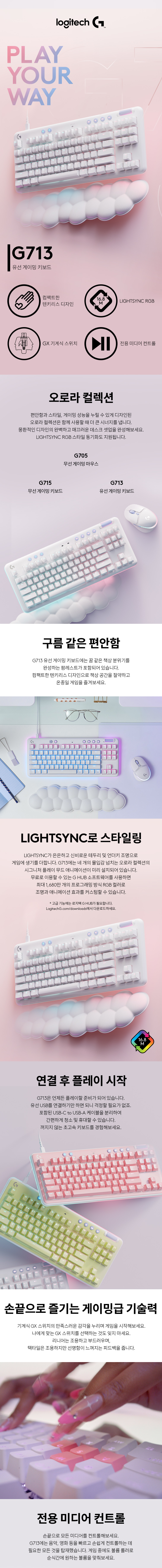 로지텍코리아 공식 G713 오로라 컬렉션 유선 게이밍 키보드 화이트, 갈축