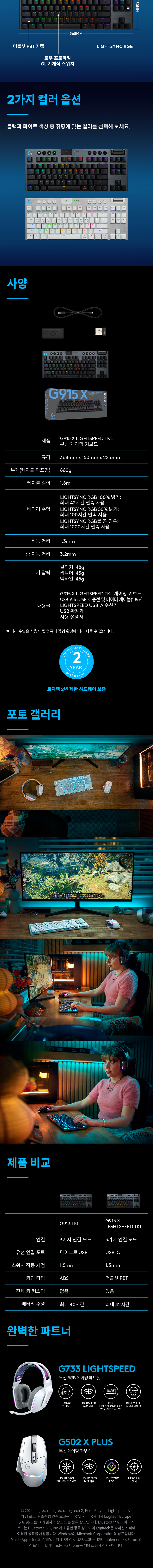 로지텍코리아 공식 G915 x LIGHTSPEED TKL 게이밍 키보드 블랙, 적축