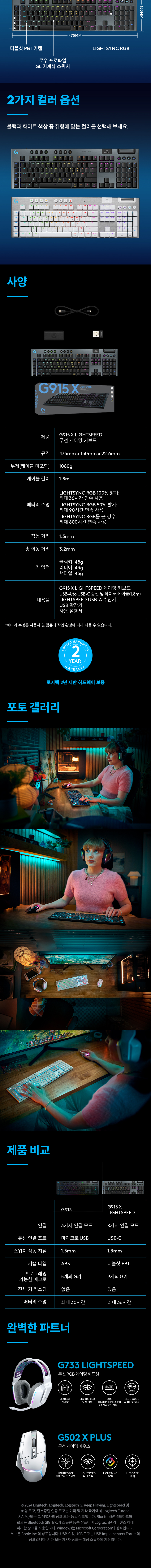 로지텍코리아 공식 G915 x LIGHTSPEED 게이밍 키보드 블랙, 청축