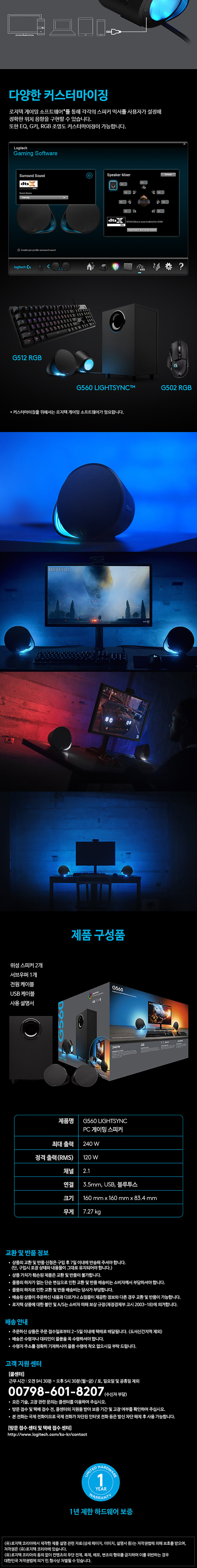 로지텍코리아 공식 G560 LIGHTSYNC 2.1채널 PC스피커