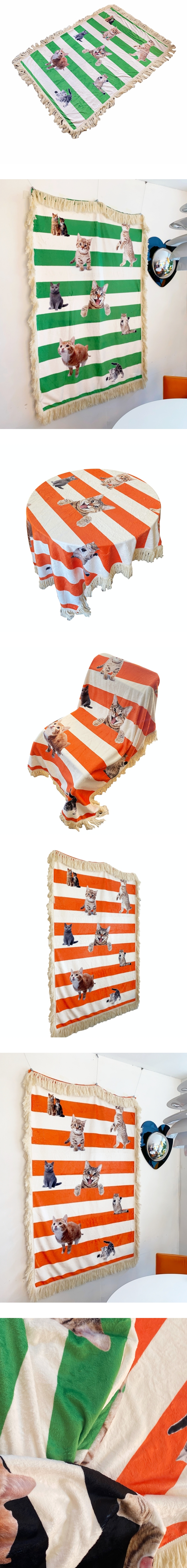 [3% 포인트 적립] you like what Love cat stripe blanket Green