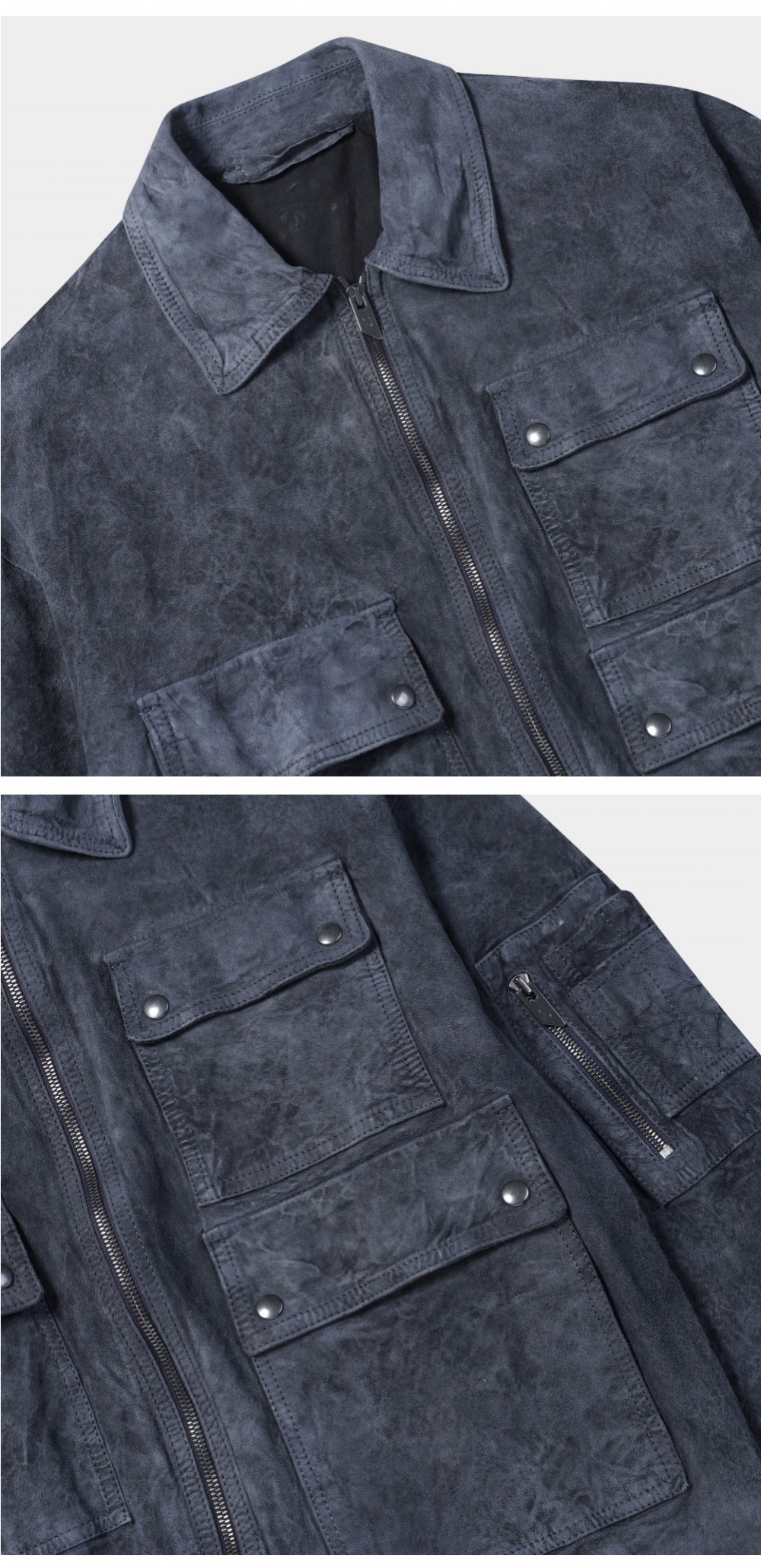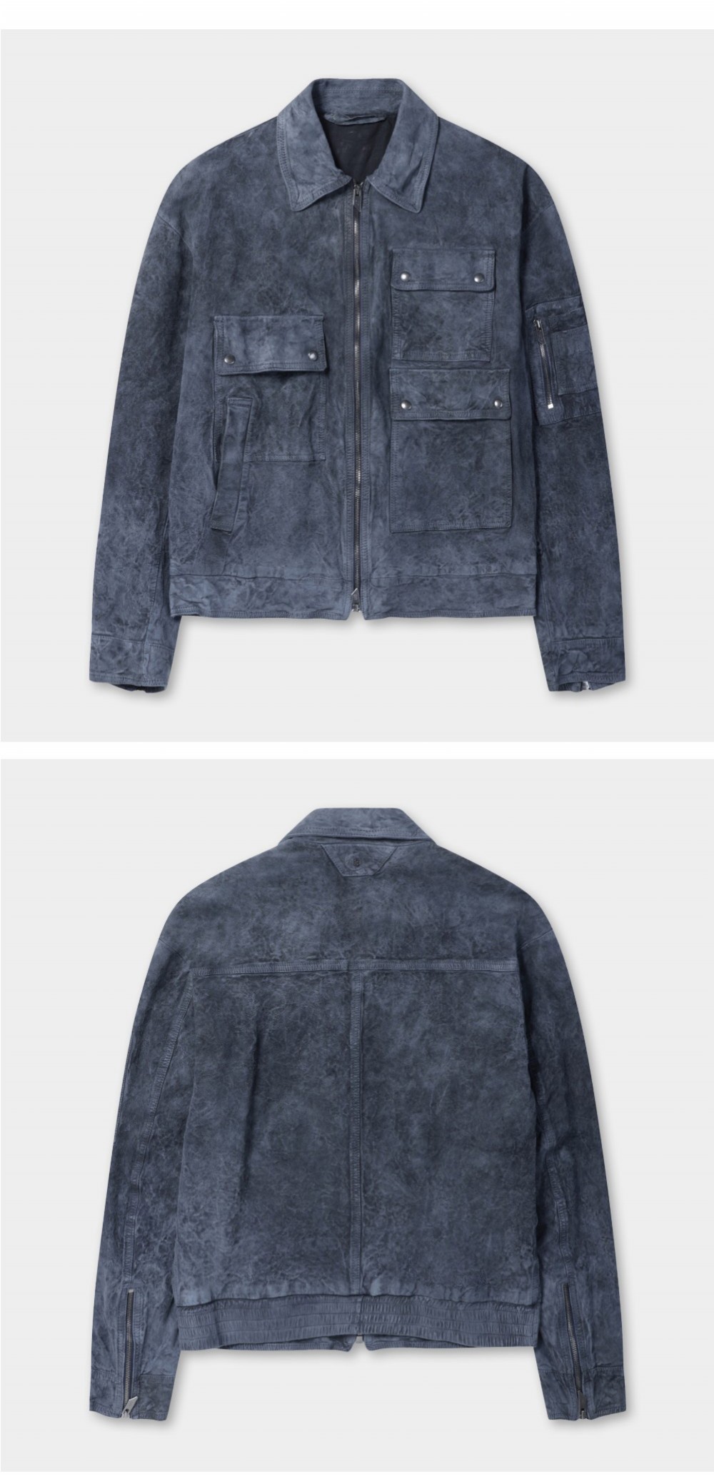 시리즈 살바토레 산토로 워싱 멀티 포켓 가죽 점퍼 네이비